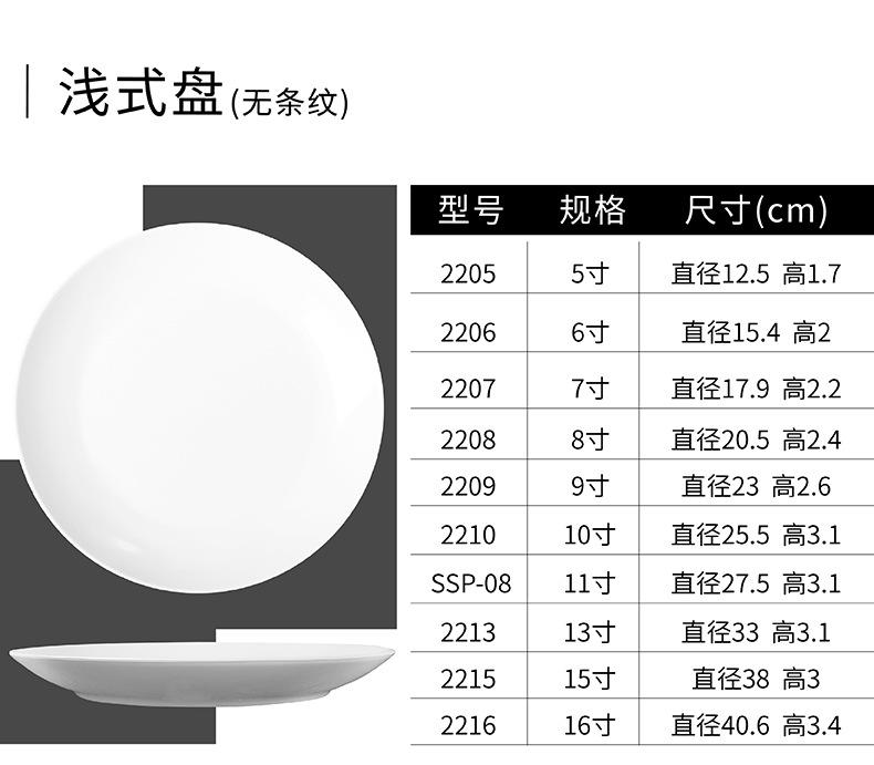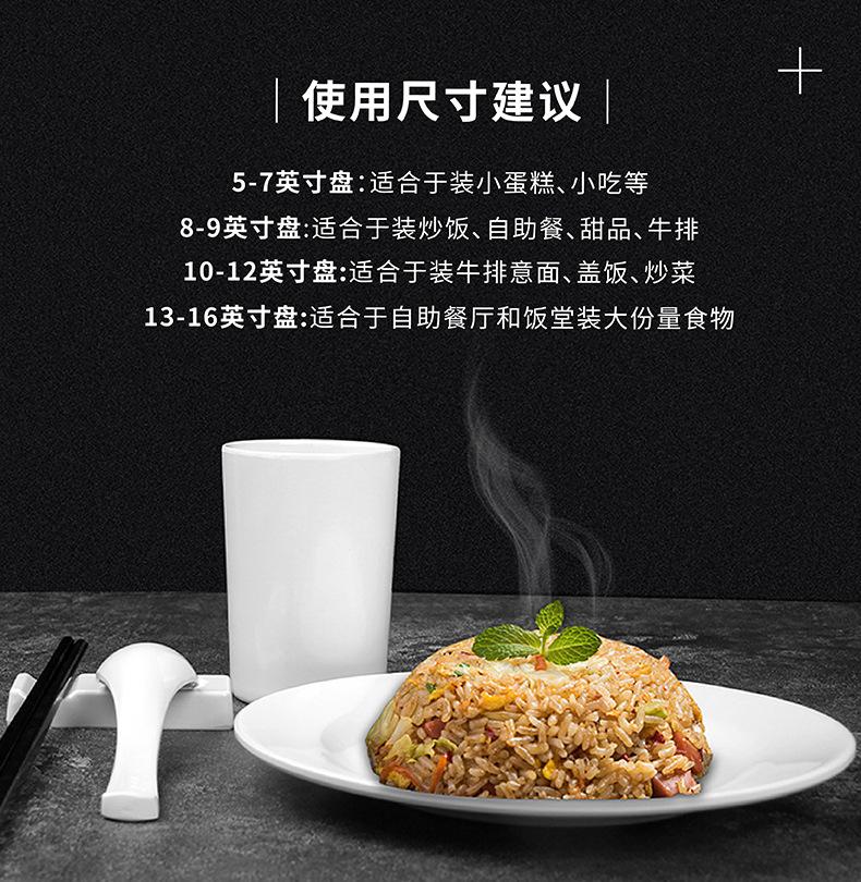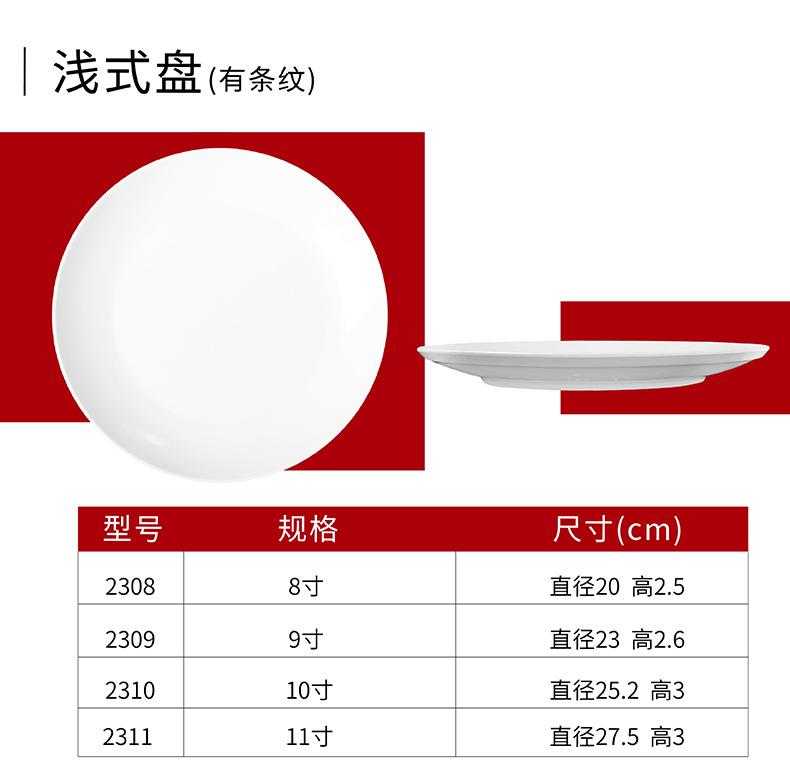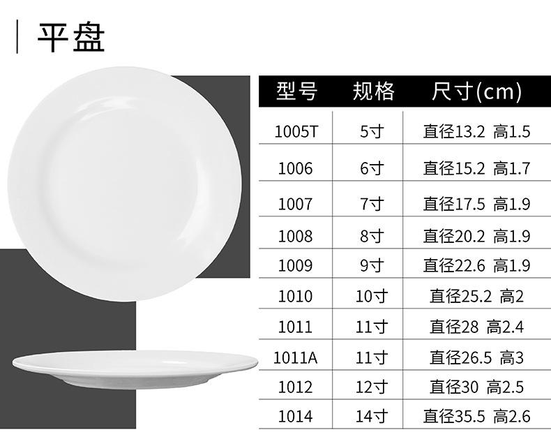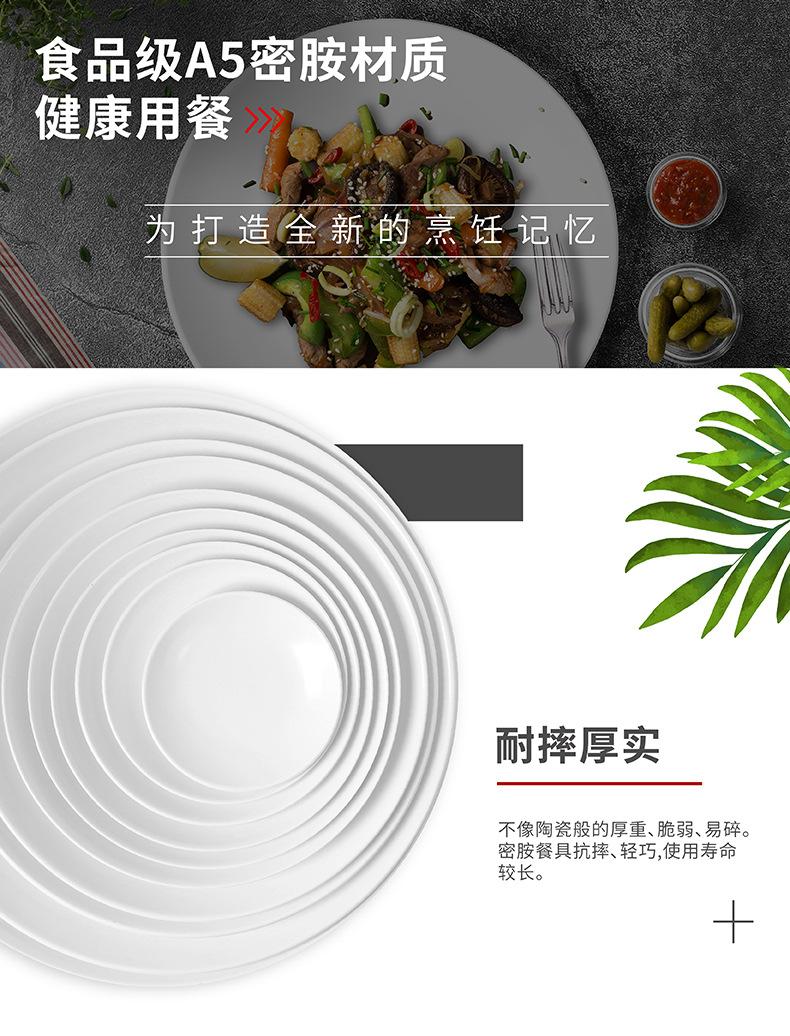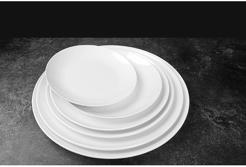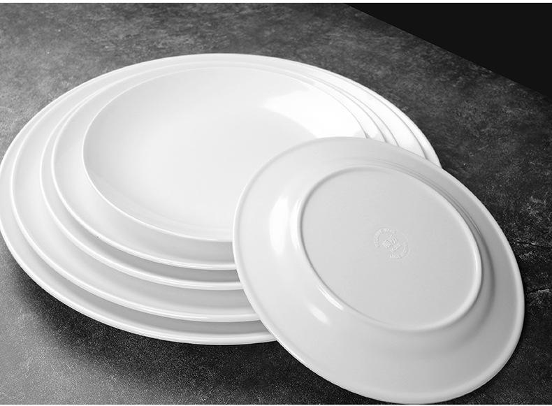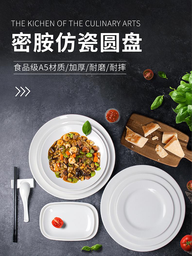 Vajilla de melamina, plato de porcelana de imitación, plato de cena de hotel, plato de arroz, plato plano de arroz, plato de buffet occidental, venta al por mayor
