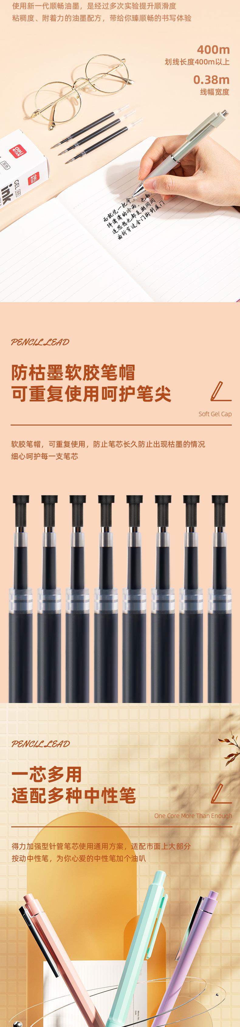 Bolígrafo de gel Deli de 0,5 balas para estudiantes, recambio de 0,38, recambio de 1,0 para Office Signature, recambio de 0,7 con cabezal de resorte