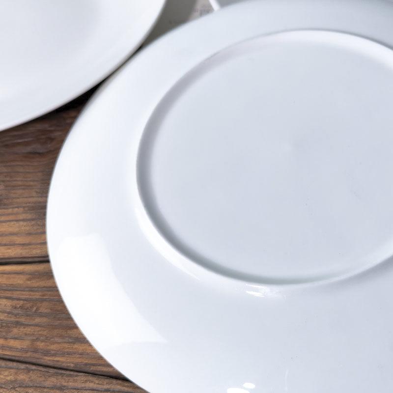 Plato poco profundo al por mayor con logotipo personalizado, vajilla de hotel blanca, plato de ensalada de porcelana china, plato de carne de cerámica de magnesio para comida occidental, plato grande