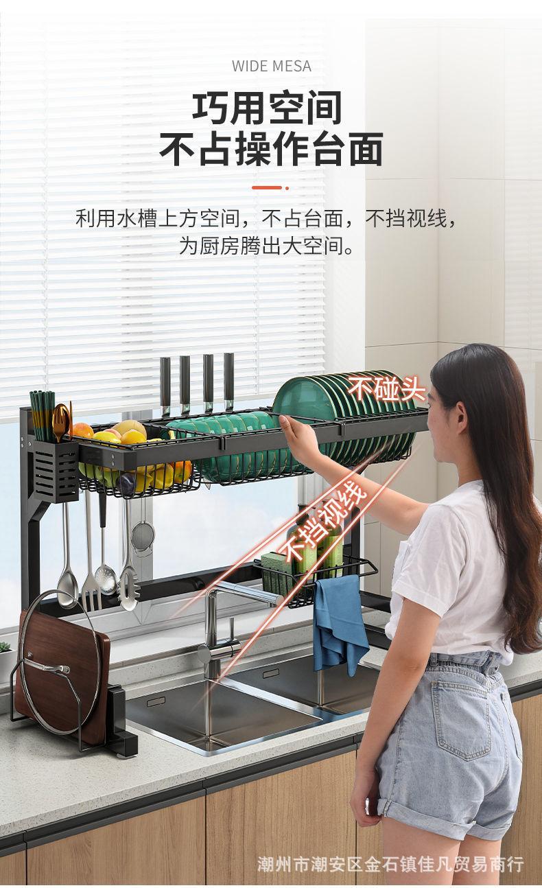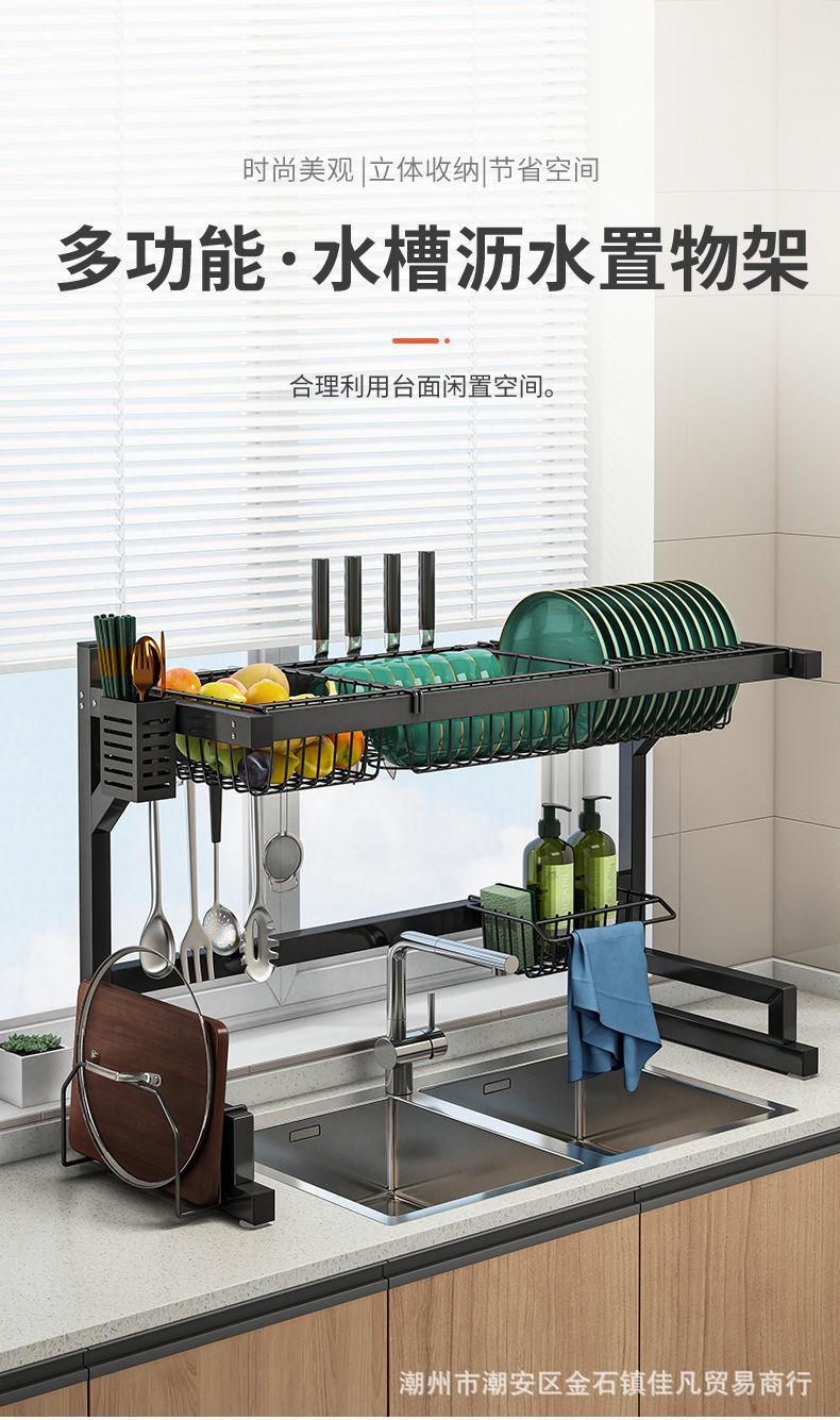 Escurridor de Fregadero de Acero Inoxidable de Encimera Multifuncional Escurridor para Tazones Escurridor para Platos Estante de Almacenamiento para Cocina