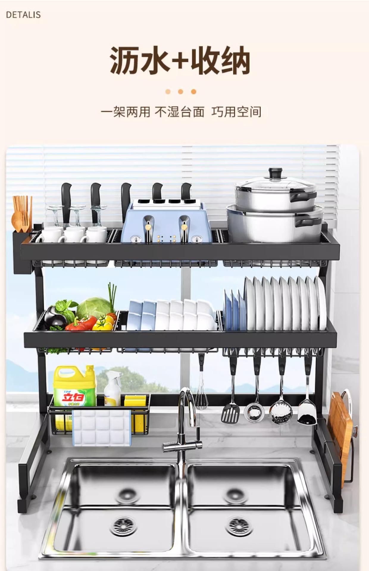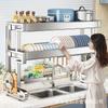 Escurridor de Fregadero de Acero Inoxidable para Cocina, Escurridor de Encimera para Hogar, Almacenamiento de Drenaje Integrado para Tazón y Palillos