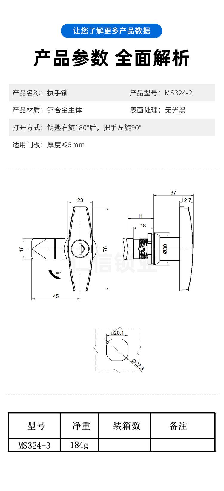 Ms324-2 Cerradura de Manija Manija en T Cerradura para Herramienta de Máquina Cerradura para Equipo Cerradura para Puerta Cerradura para Caja de Distribución Cerradura para Gabinete de Chasis