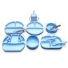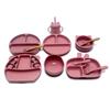 Tazón de comida para bebés, plato de cena separado de silicona para niños, juego de tenedor y cuchara con mango de madera, vajilla de silicona para niños que aprenden a comer.