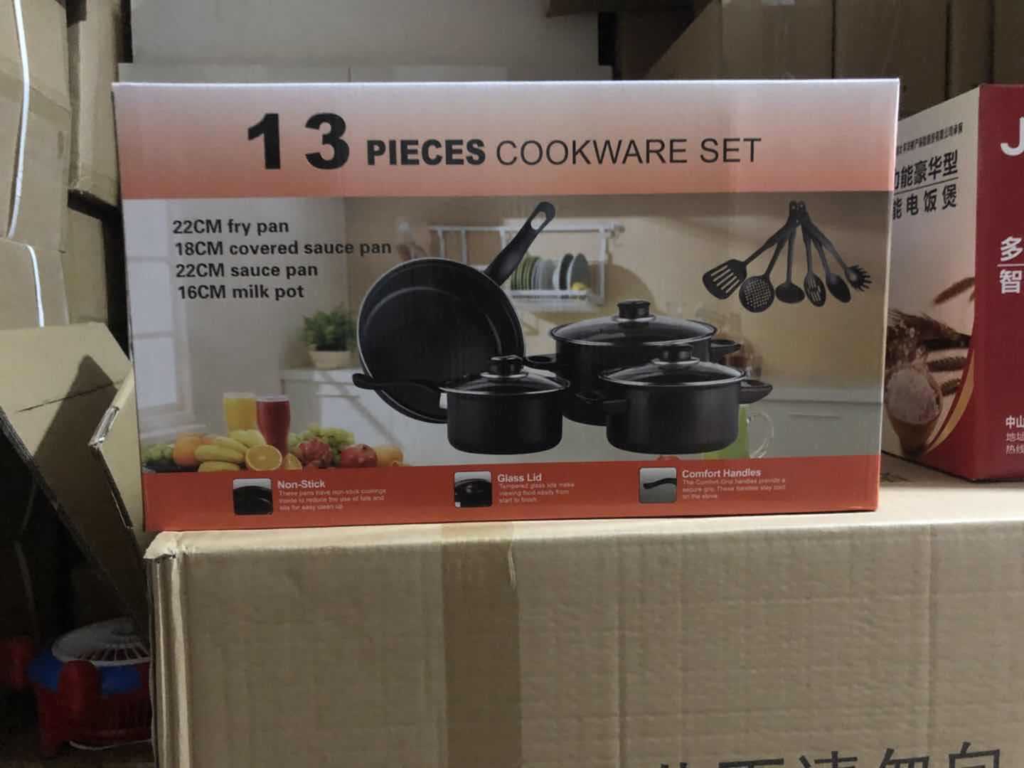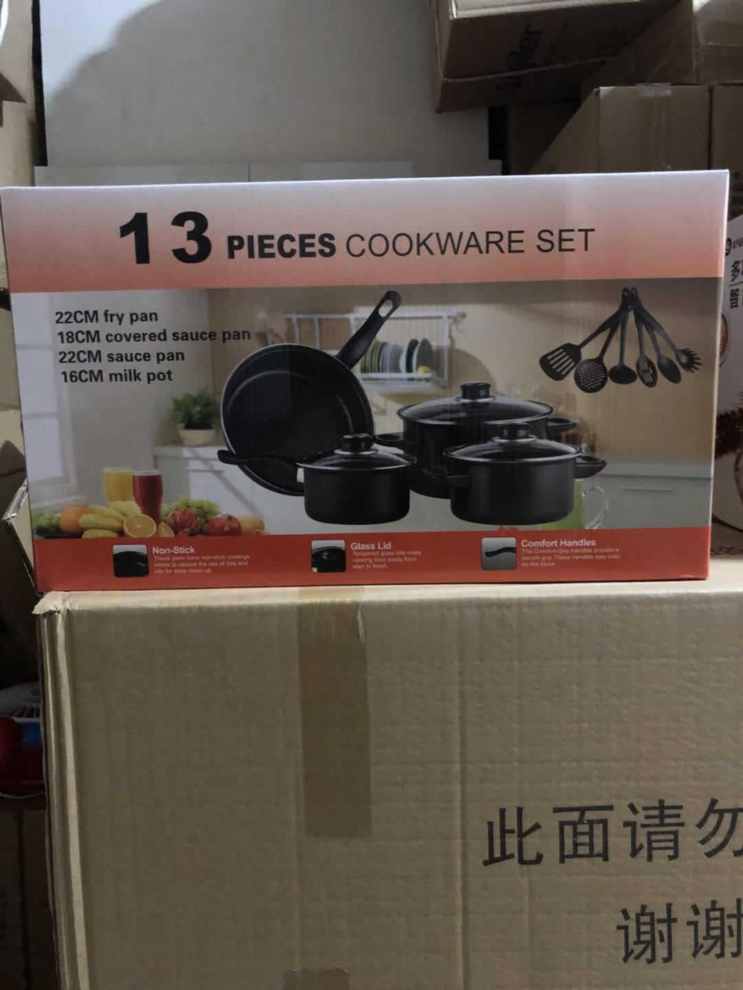 Juego de ollas de 13 piezas, wok de comercio exterior, sartén pequeña plana, olla para sopa, pala, juego de ollas de gran venta