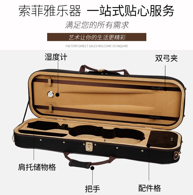 Fabricantes suministran estuche de violín cuadrado con higrómetro