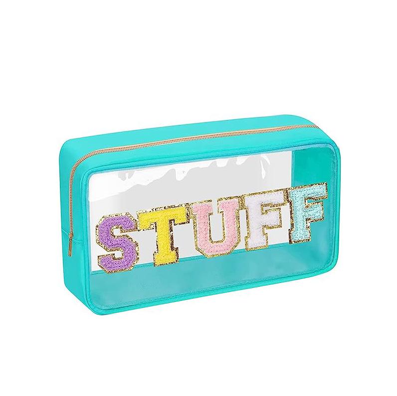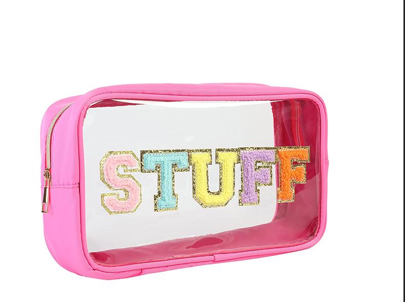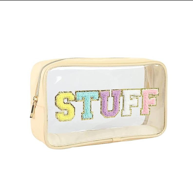 Nueva bolsa de cosméticos transparente de PVC con letras bordadas, bolsa de lavado portátil de viaje de gran capacidad, bolsa de almacenamiento de cosméticos