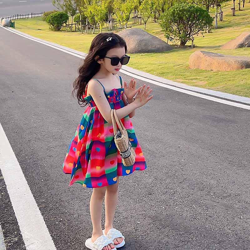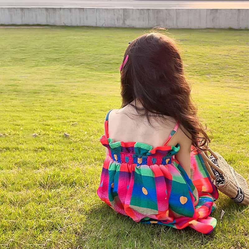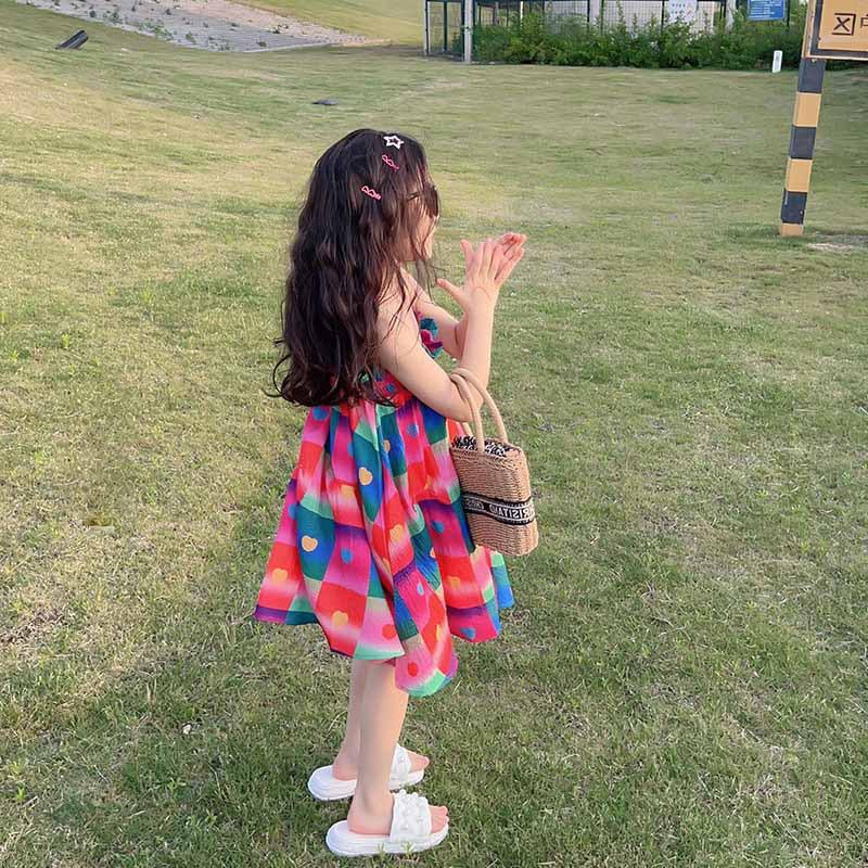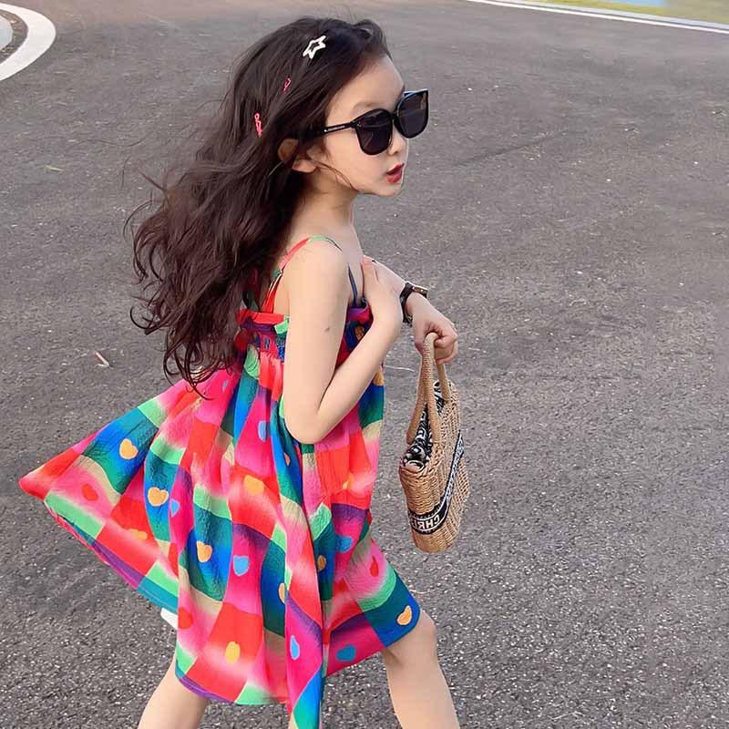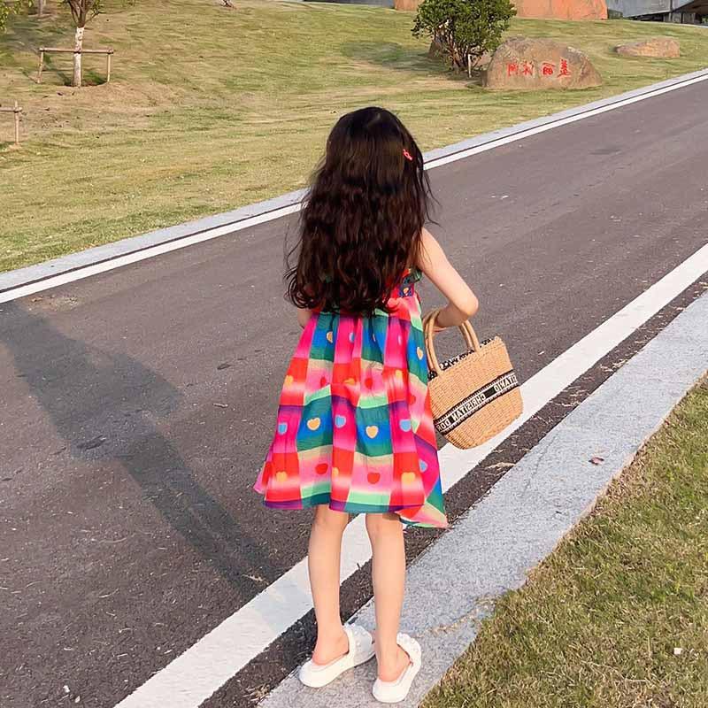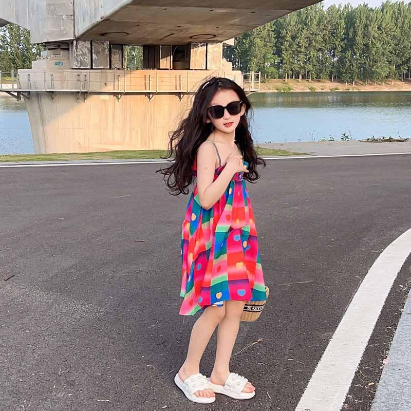 Vestido de Tirantes para Niñas Verano Nuevo Estilo Vacacional Vestido de Playa Vestido Elegante para Niños