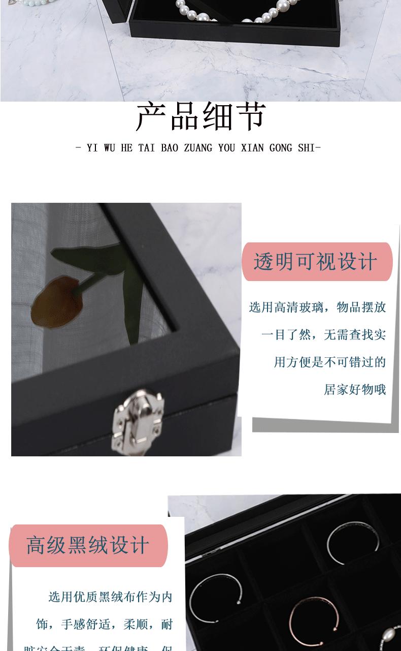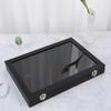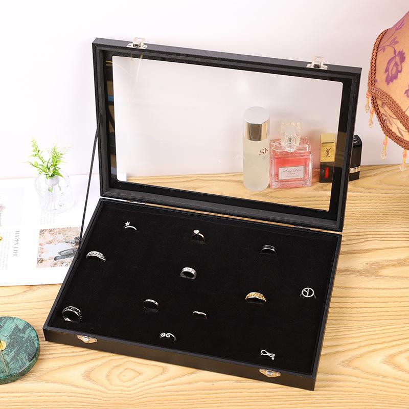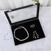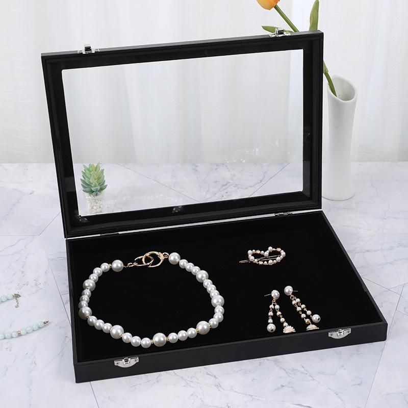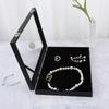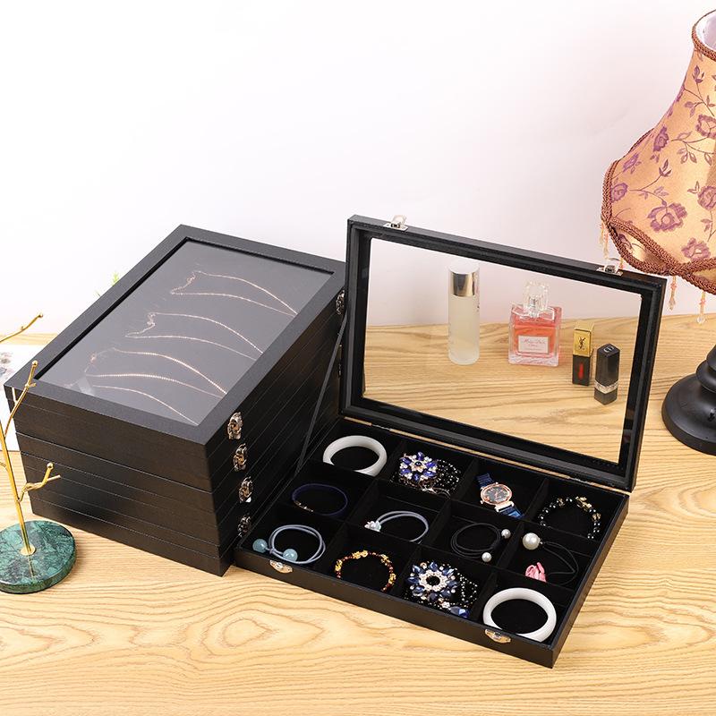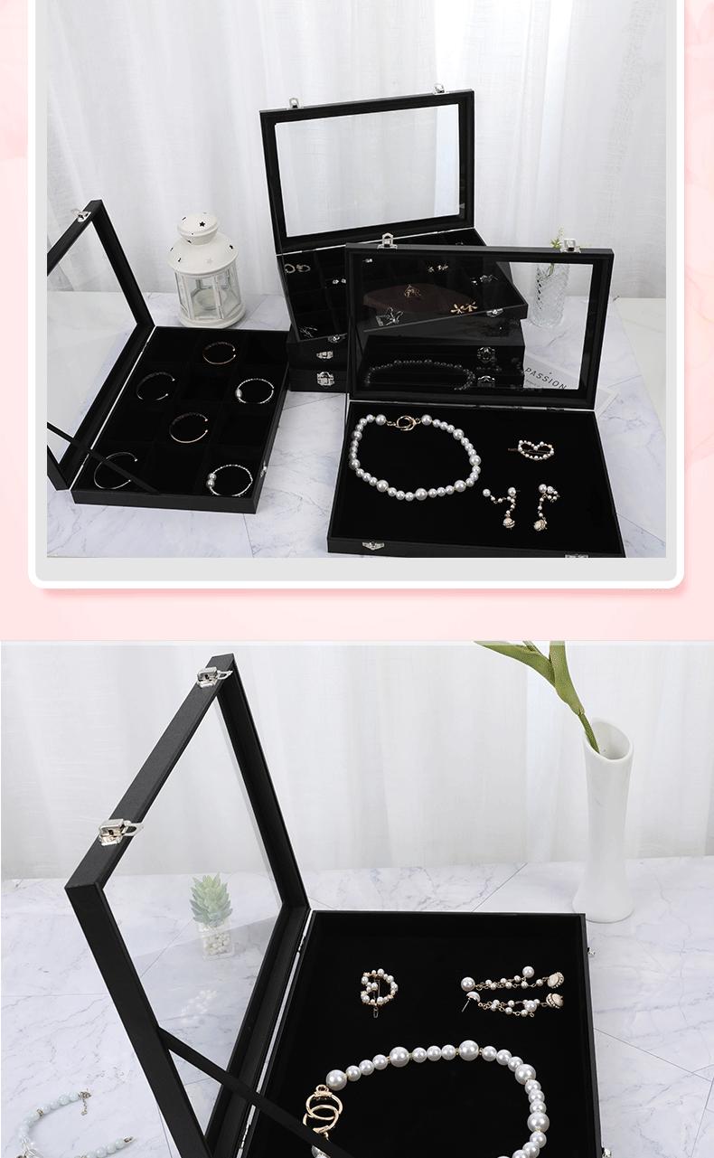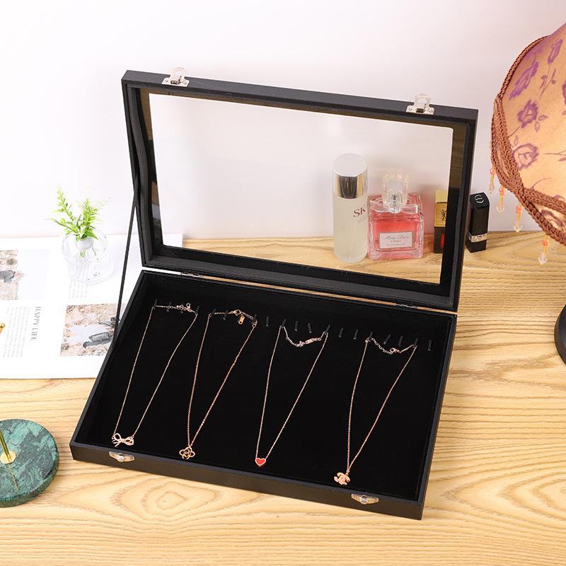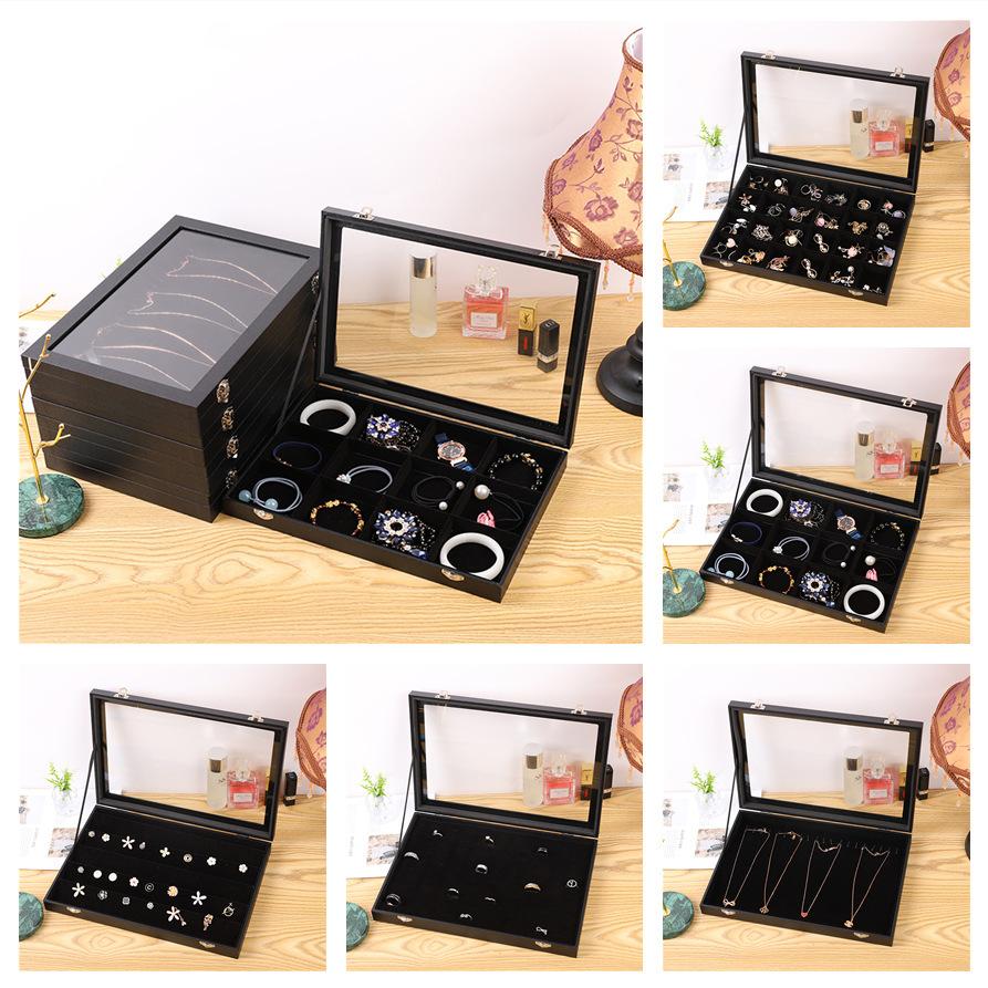 Joyero negro con tapa de cristal a prueba de polvo, expositor a cuadros, caja de almacenamiento y archivador para collares y pendientes.