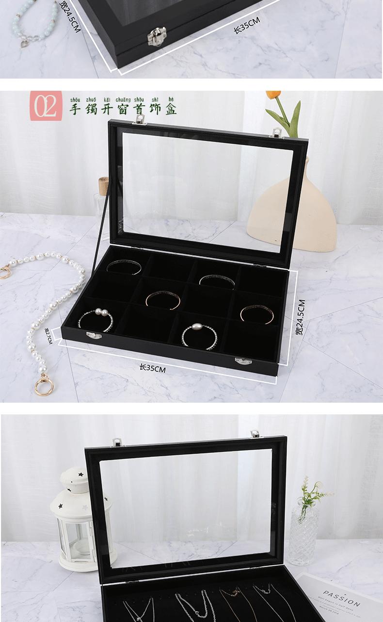 Open window inside empty jewelry box, Open window 24 grid earrings hanging jewelry box, Open window 12 grid br...