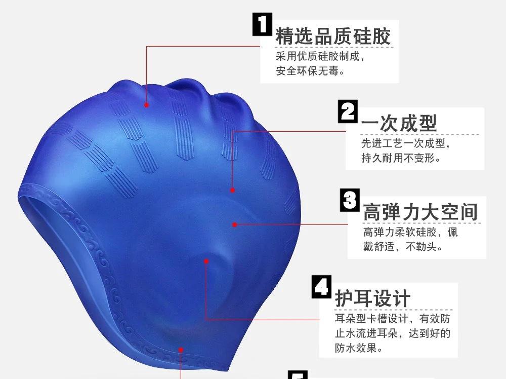 Gorro de natación de silicona con protección para los oídos, impermeable, antideslizante, para adultos, para entrenamiento de natación, disponible al por mayor, con logotipo imprimible transfronterizo.