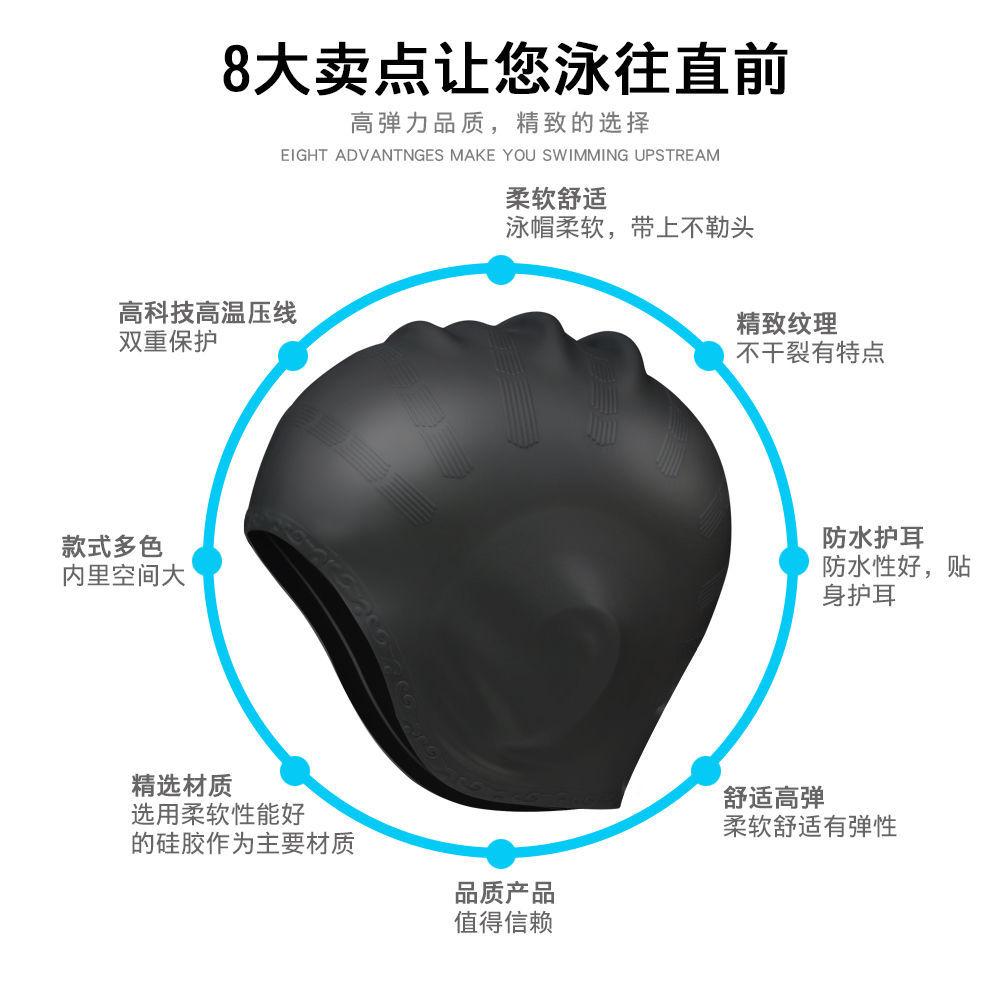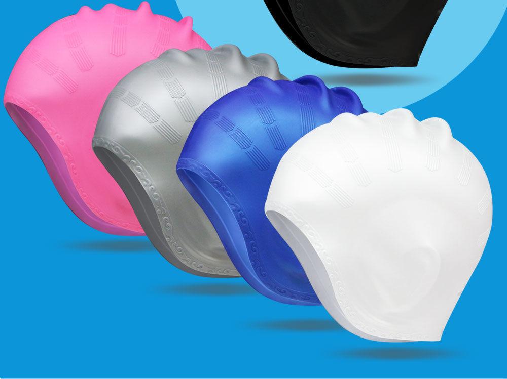 Gorro de natación al por mayor, gorro de natación para adultos, gorro de natación de moda para hombres y mujeres, gorro de natación de pelo largo impermeable, gorro de natación de silicona con protección auditiva para piscina.