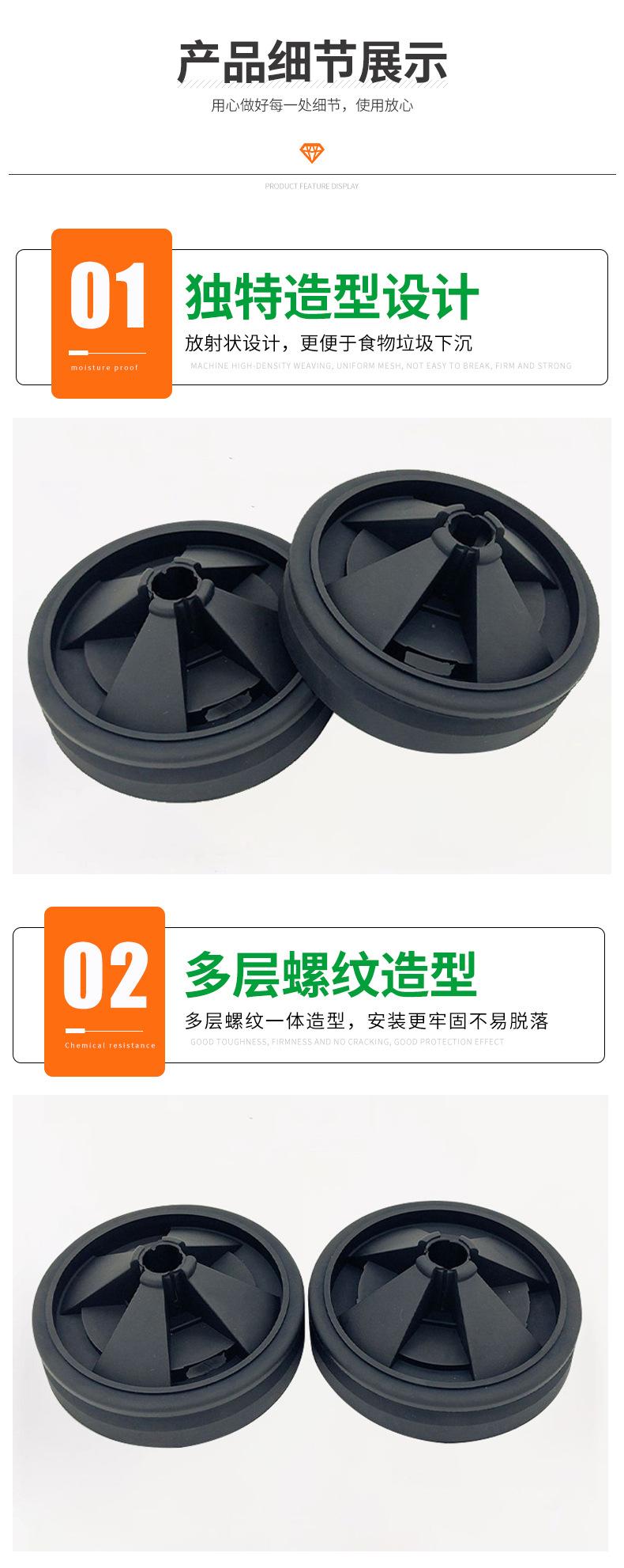 Nuestra empresa se ha especializado en la producción de accesorios de goma para trituradores de basura de cocina durante más de diez años, y apoya profesionalmente productos de marcas como Bakerbass. Todas las piezas de goma cumplen con las normas EU ROHS2.0 y REACH. Los productos no se mezclan con ningún material reciclado, ¡así que no hay necesidad de preocuparse por la calidad!
