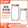 Frasco de vidrio transparente de borosilicato de alta calidad, sellado, para almacenar frutos secos, refrigerios, frasco de vidrio con tapa de bambú a prueba de humedad.