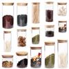 Venta al por mayor de tarros de té, de vidrio resistente al calor, sellados, transparentes, para almacenar frutos secos, aperitivos, dulces, con tapa de bambú