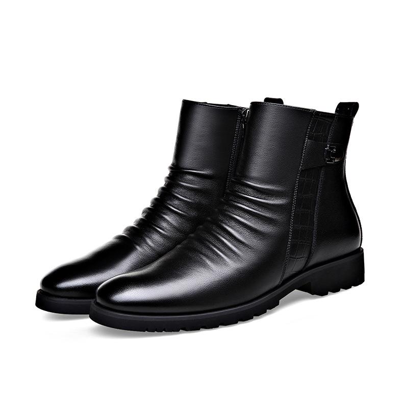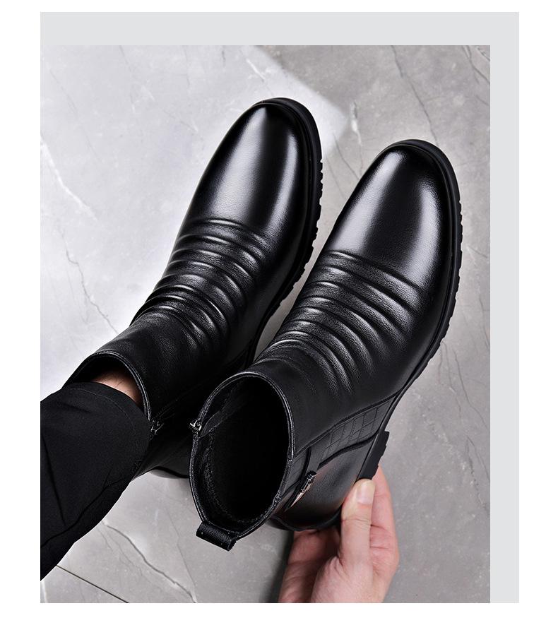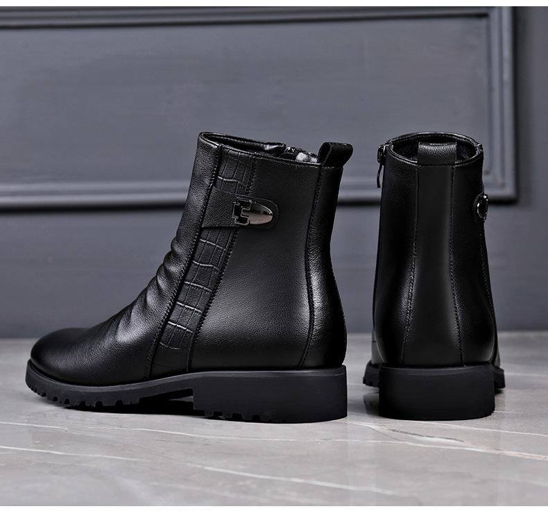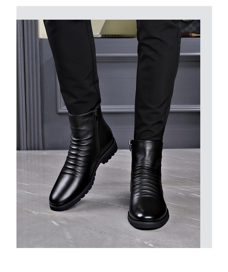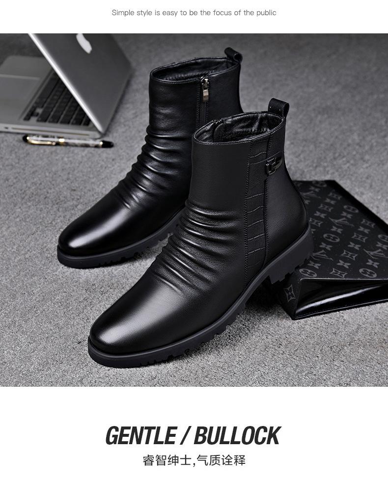 Nuevas botas Martin de caña alta para hombre, de piel de vaca, suaves y cómodas, informales, con cremallera lateral, forradas en polar, sin cordones.