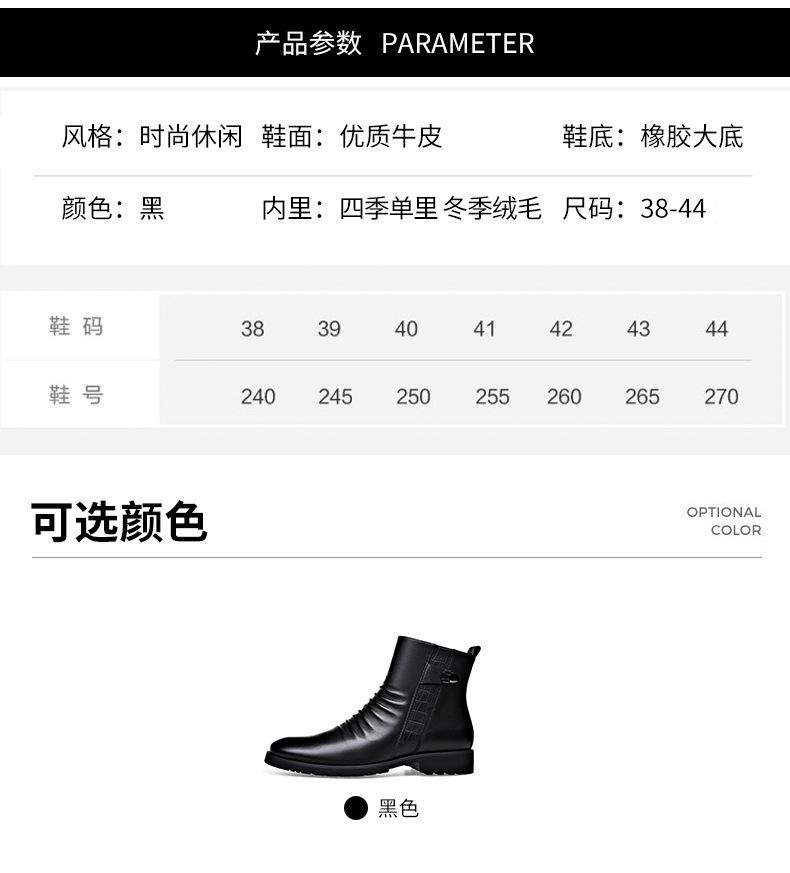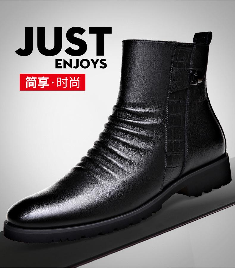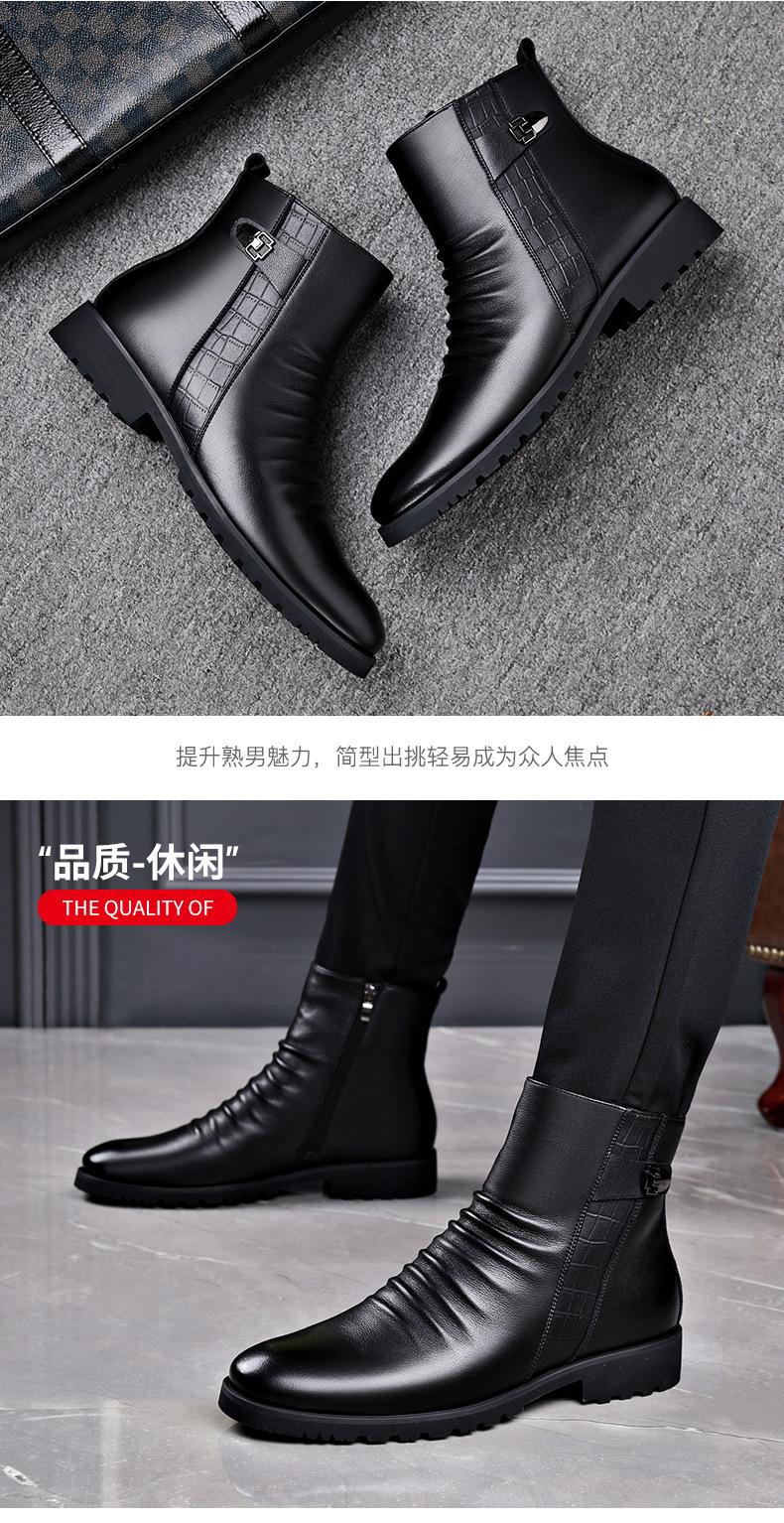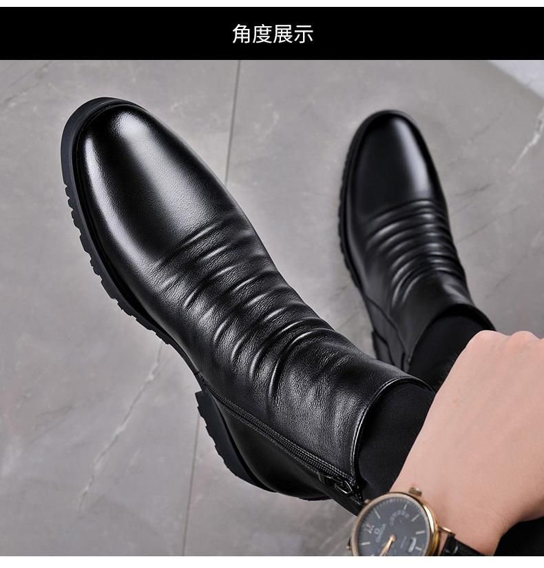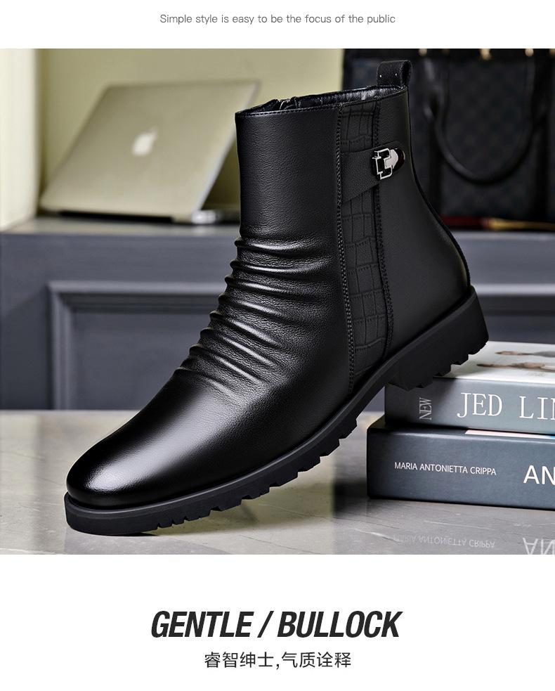 Nuevas botas Martin de caña alta para hombre, de piel de vaca, suaves y cómodas, informales, con cremallera lateral, forradas en polar, sin cordones.
