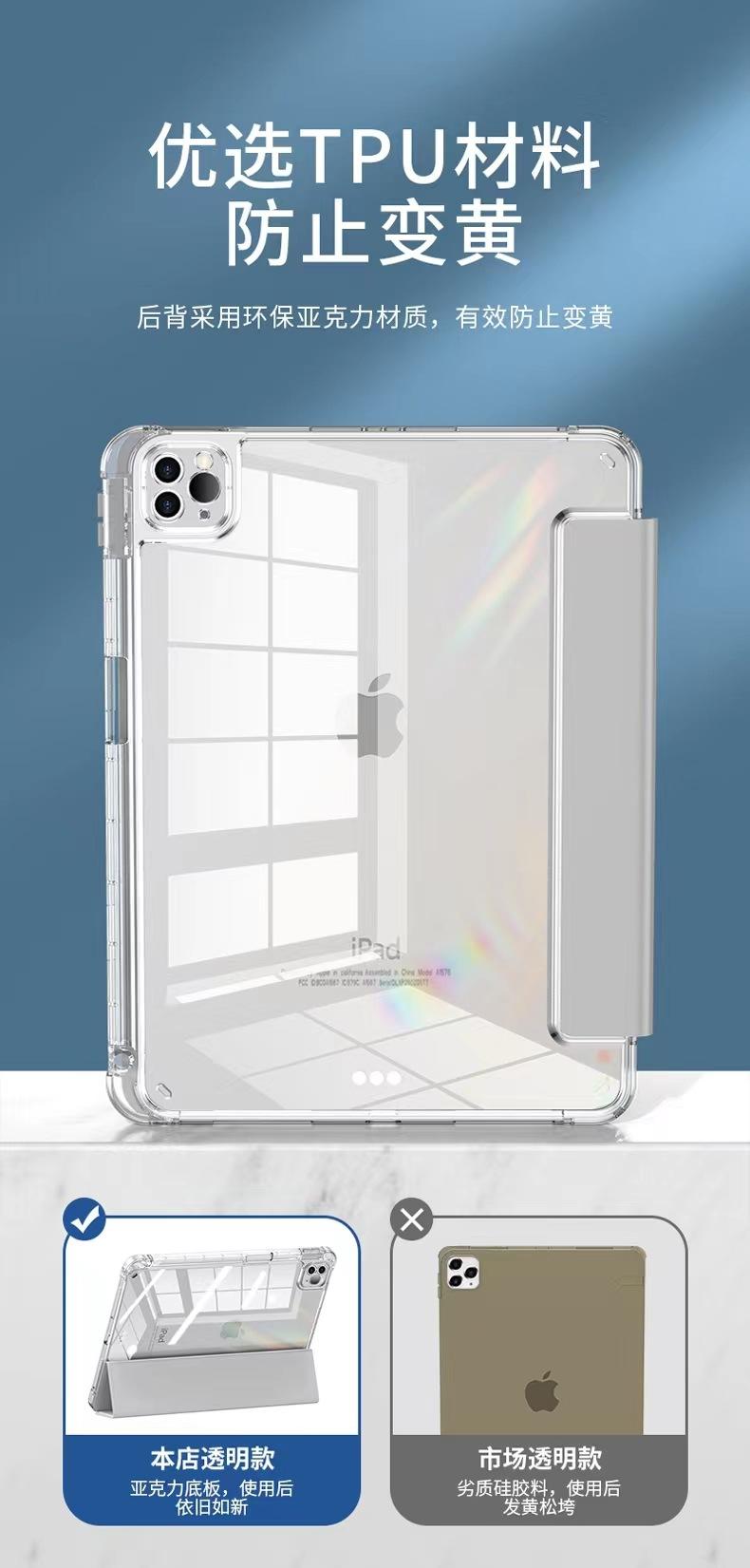 Adecuado para funda protectora para iPad 11 pulgadas acrílico 10.2 borde suave ranura para lápiz Apple 10 generación funda protectora transparente 10.5