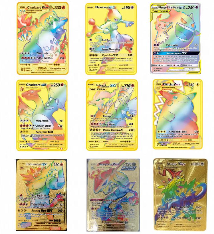 Una gran cantidad de tarjetas de metal de ensueño del tesoro en existencia, tarjetas de metal de Pokémon de elfo mascota bebé mágico en inglés
