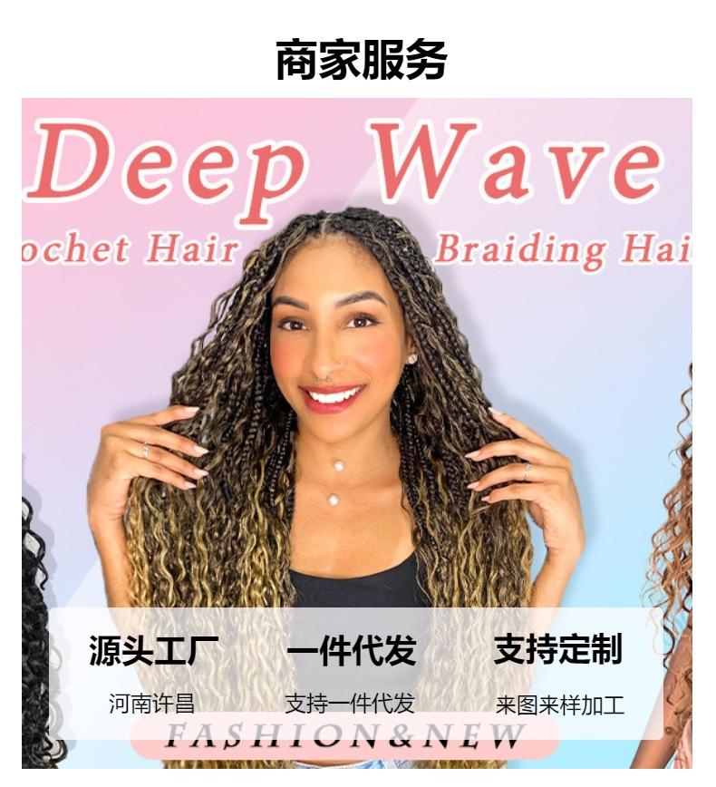 Peluca de fibra química africana europea y americana, cabello de ganchillo, cabello rizado, cabello con ondas profundas, peluca Xuchang