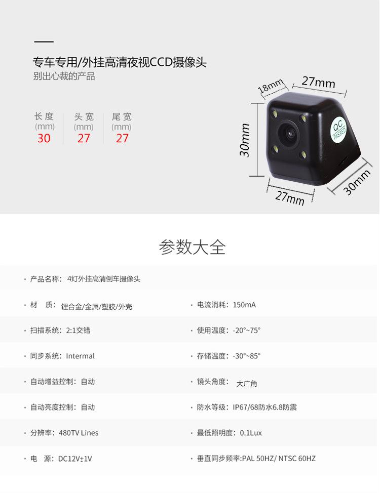 Cámara de visión nocturna LED con regla Impermeable HD CCD Cámara de visión trasera universal de marcha atrás Imagen de marcha atrás