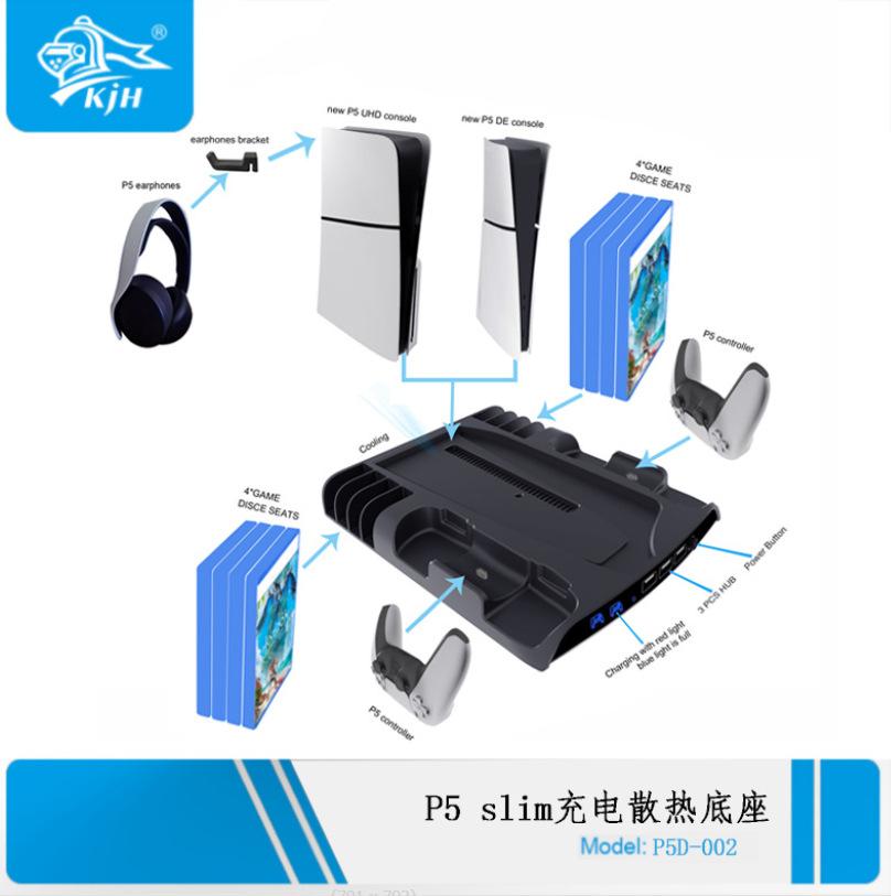 1. Diseñado específicamente para la refrigeración del host PS5 SLIM y la carga del mando PS5