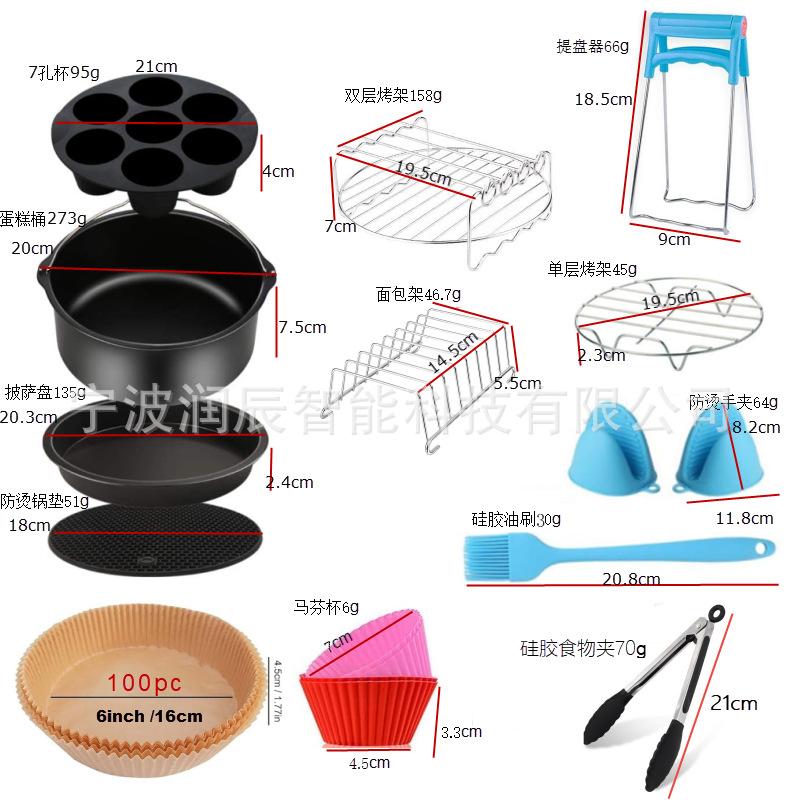 Accesorios para freidora de aire 13 piezas de accesorios, adecuados para freidoras de aire de 3,5 a 5,8 cuartos de galón Freidora azul