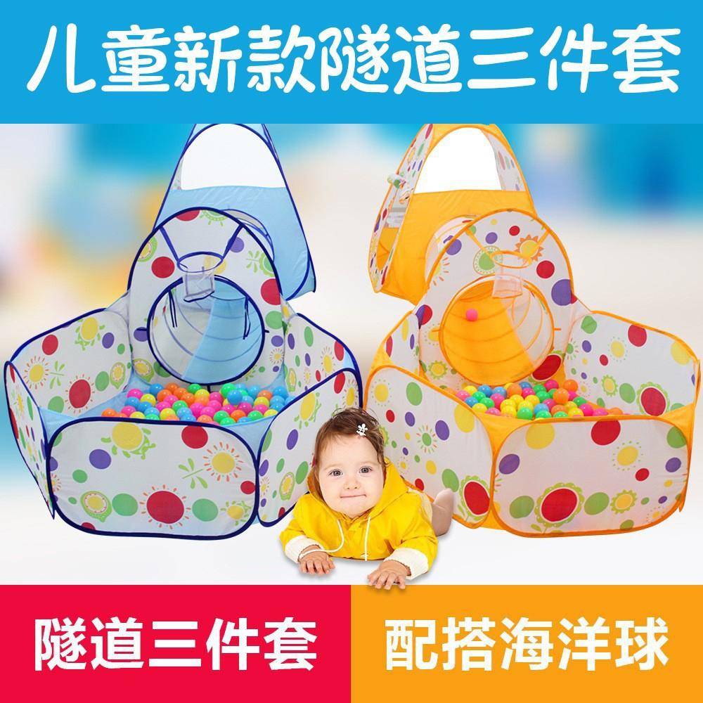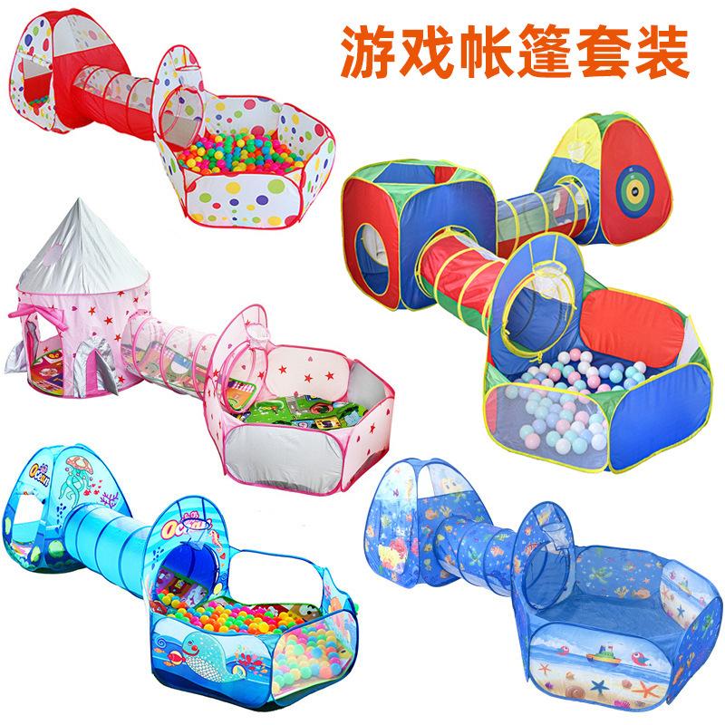 Tienda de campaña para niños al por mayor de fábrica, casa de juegos para interiores, tienda de campaña tres en uno para gatear, piscina de bolas de tiro al océano, juguetes