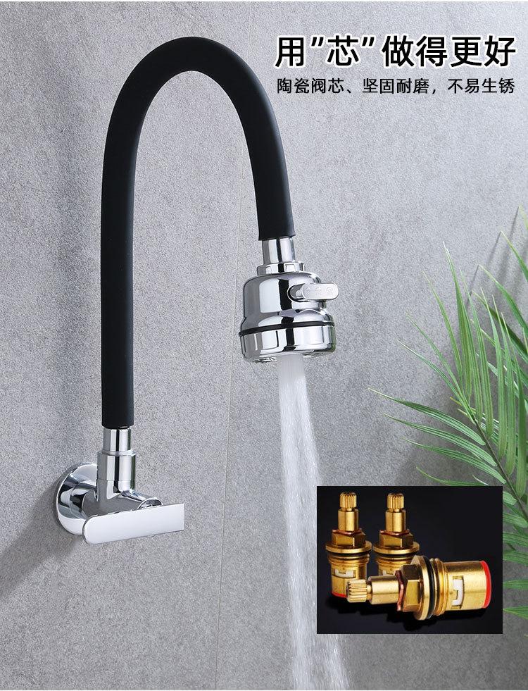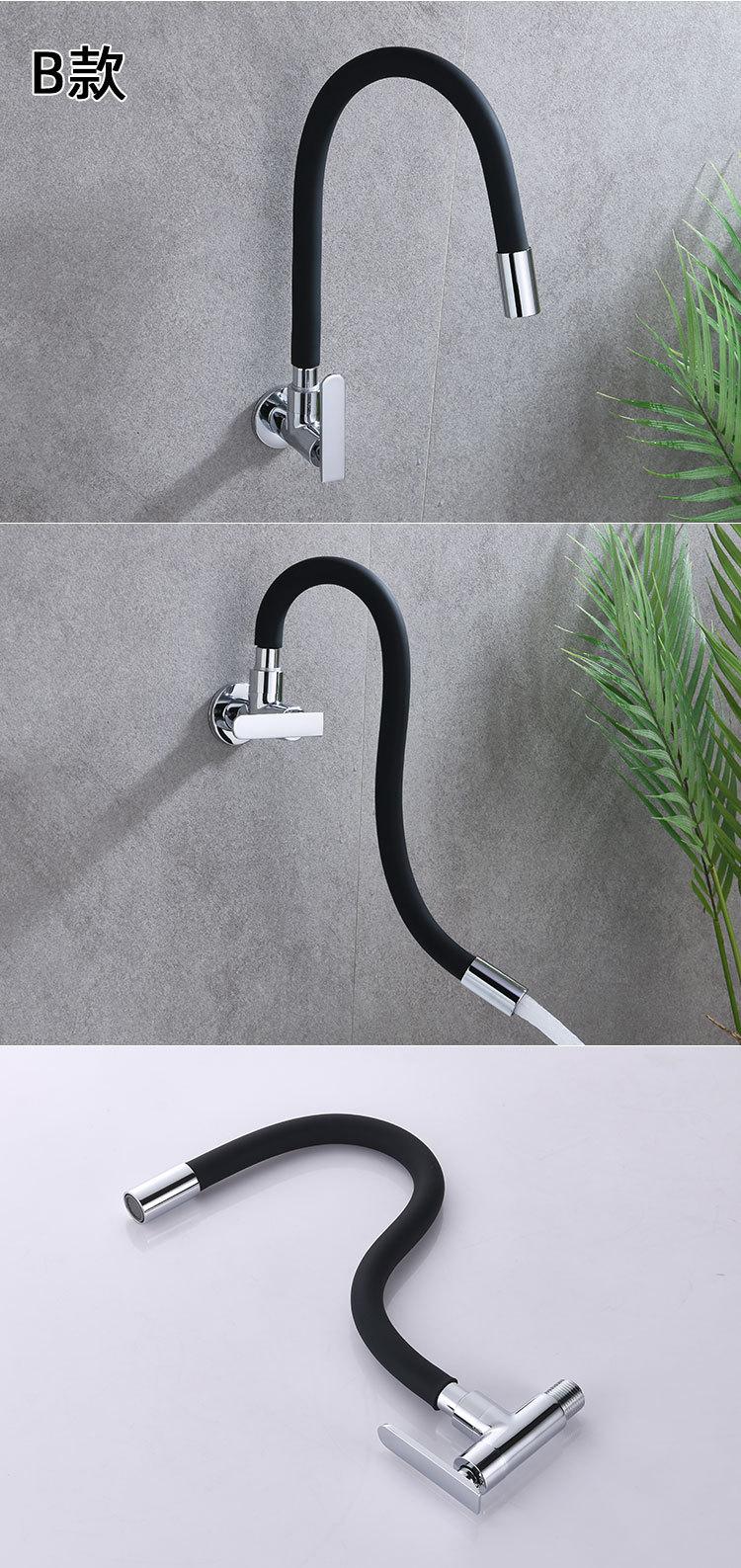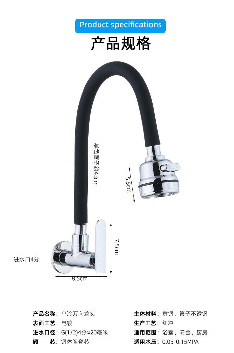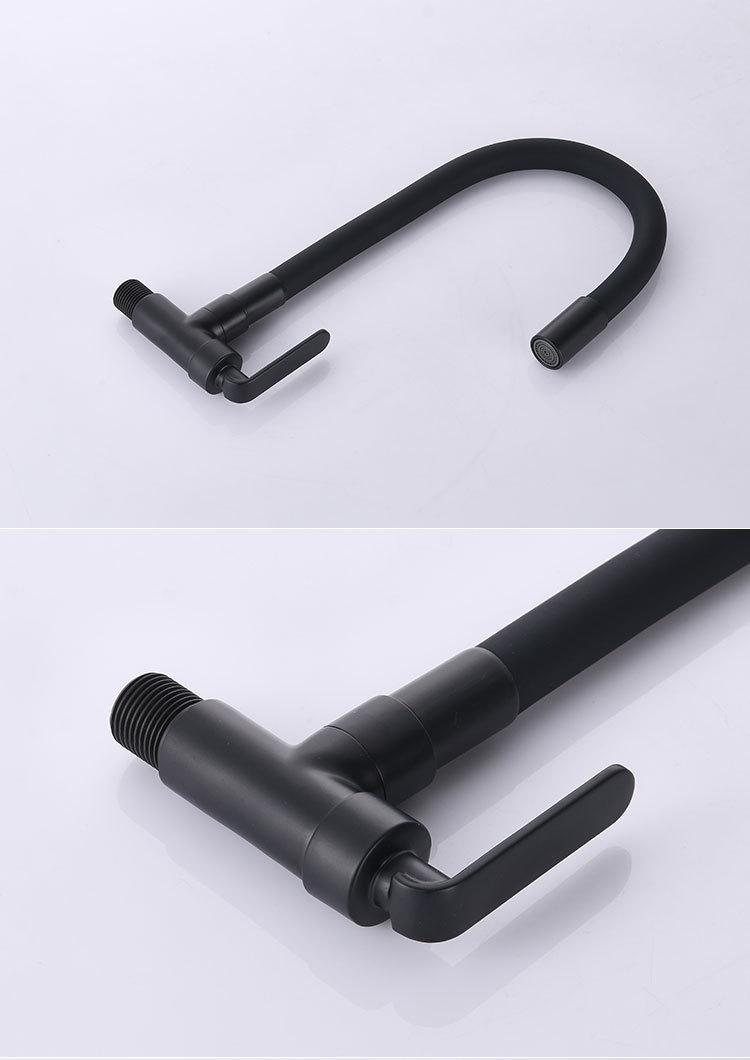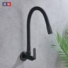 Fregadero de cocina doméstico, fregadero de pared, giratorio, grifo universal de una sola manija, negro, a prueba de salpicaduras