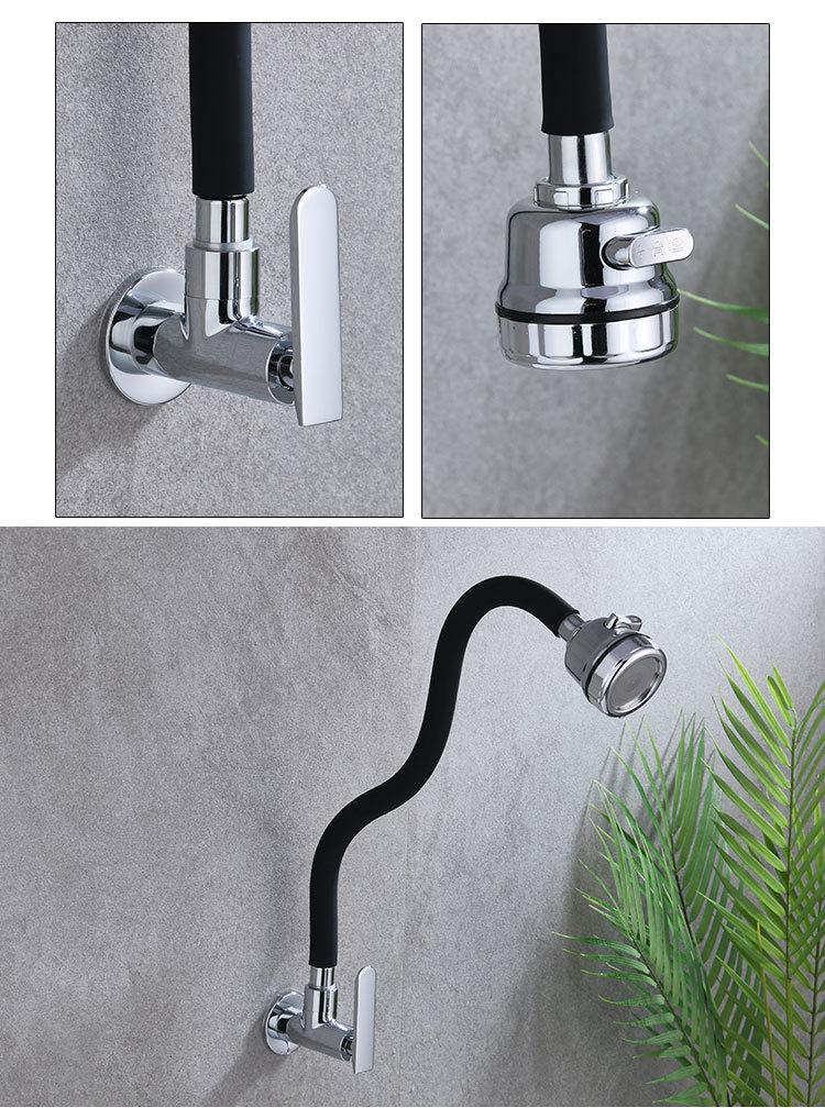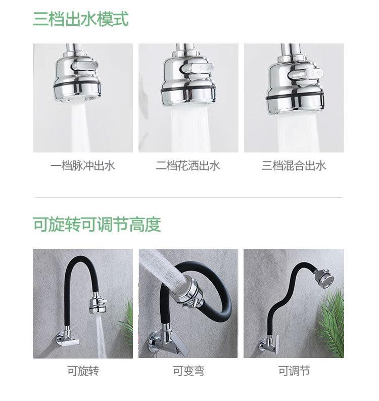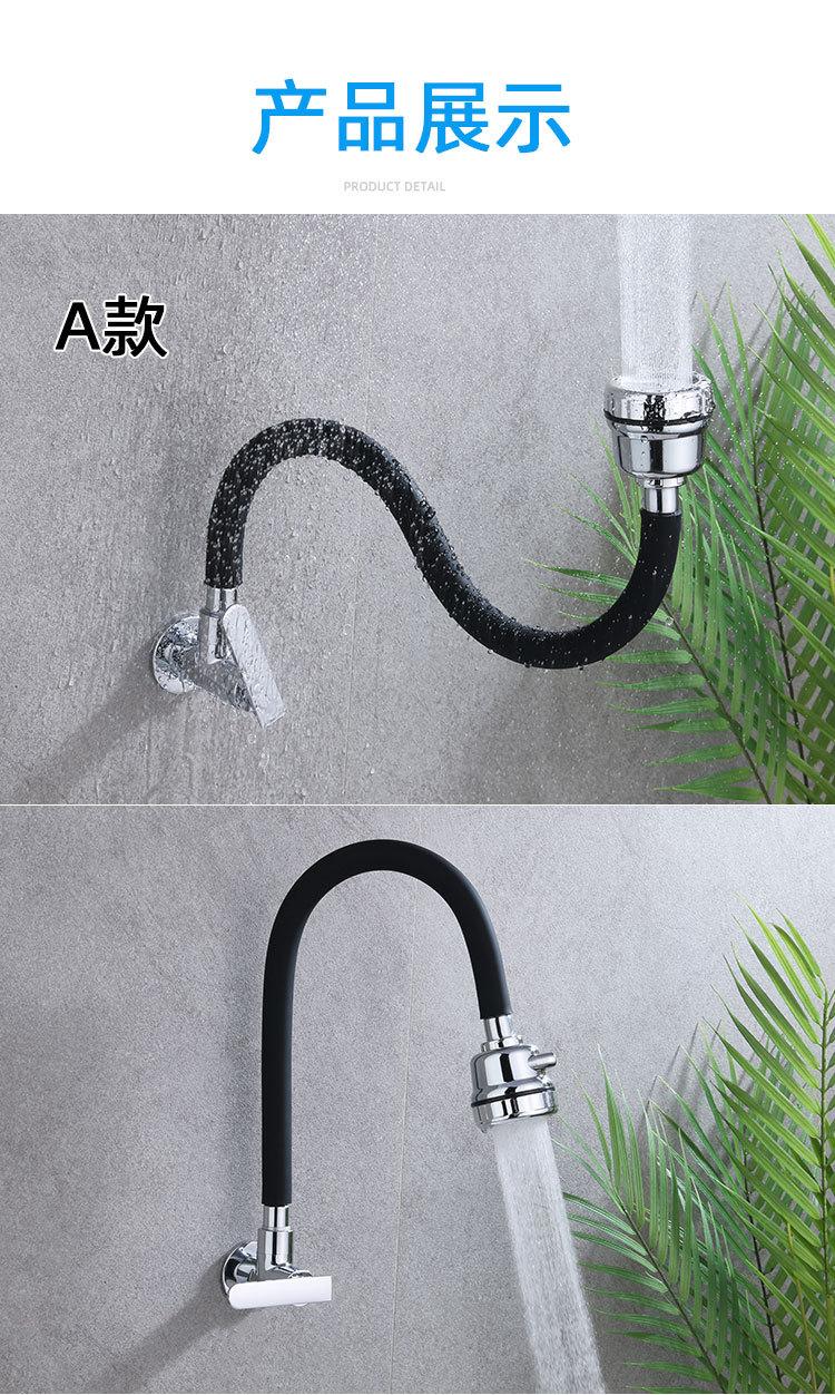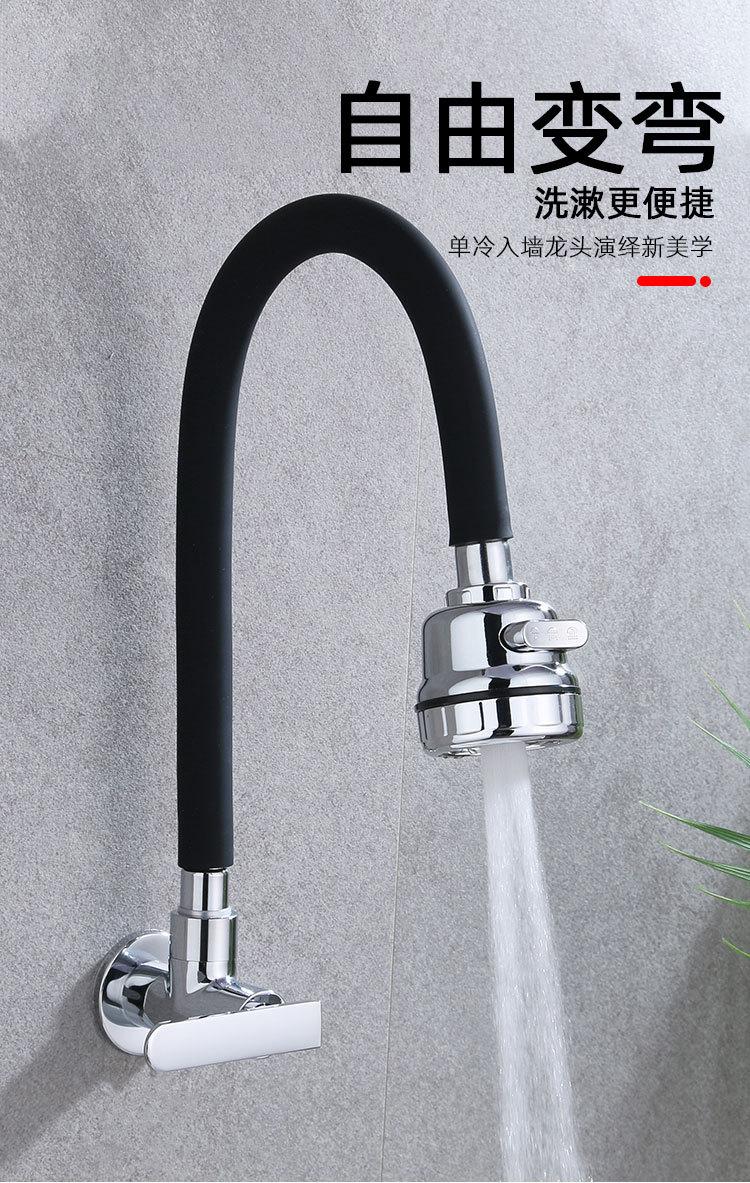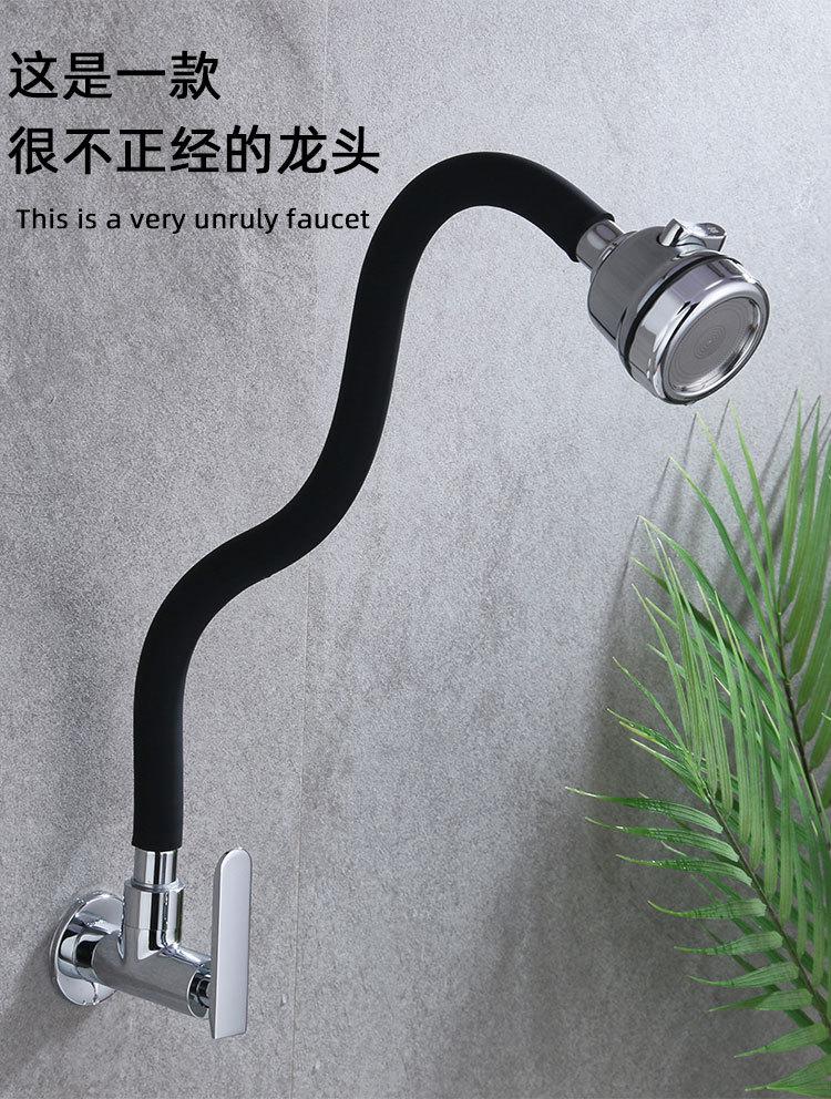 Fregadero de cocina doméstico, fregadero de pared, giratorio, grifo universal de una sola manija, negro, a prueba de salpicaduras