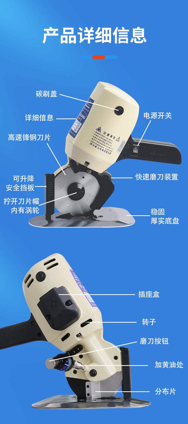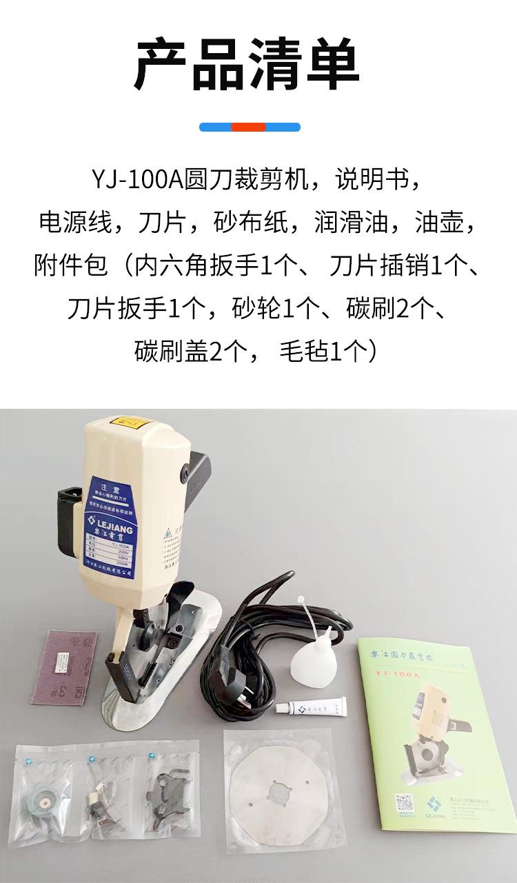 Tijeras eléctricas de mano Lejiang YJ-100A con cuchilla redonda, cortadora manual de telas rotas con cuchillas redondas eléctricas, corte manual de telas pequeñas