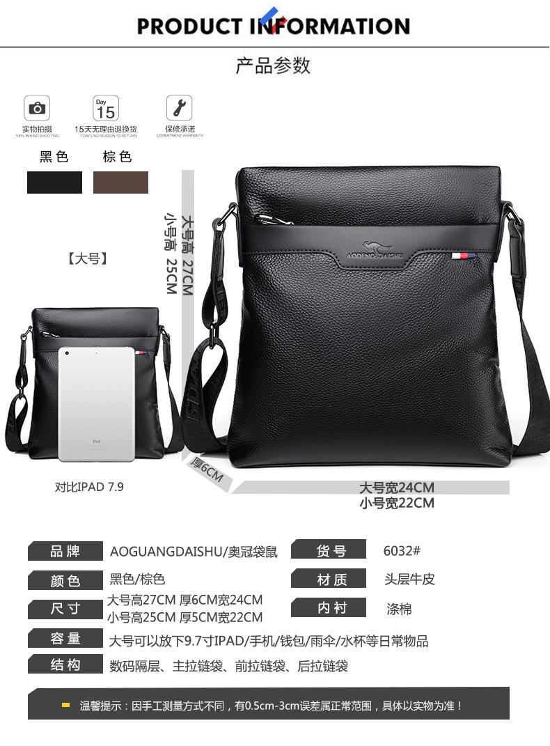 Bolso de Hombro para Hombre de Piel de Vaca de Primera Capa Bolso Cruzado de Cuero Genuino Bolso para Hombre Bolso de Negocios de Piel de Vaca Mochila para Hombre Bolso Casual Nuevo Estilo