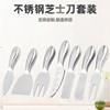 Juego de cuchillos para queso de acero inoxidable con borde cruzado, cuchillo para hornear de cocina, cuchillo para mantequilla y queso, caja de madera, cuchillo para pizza, tenedor y pala.