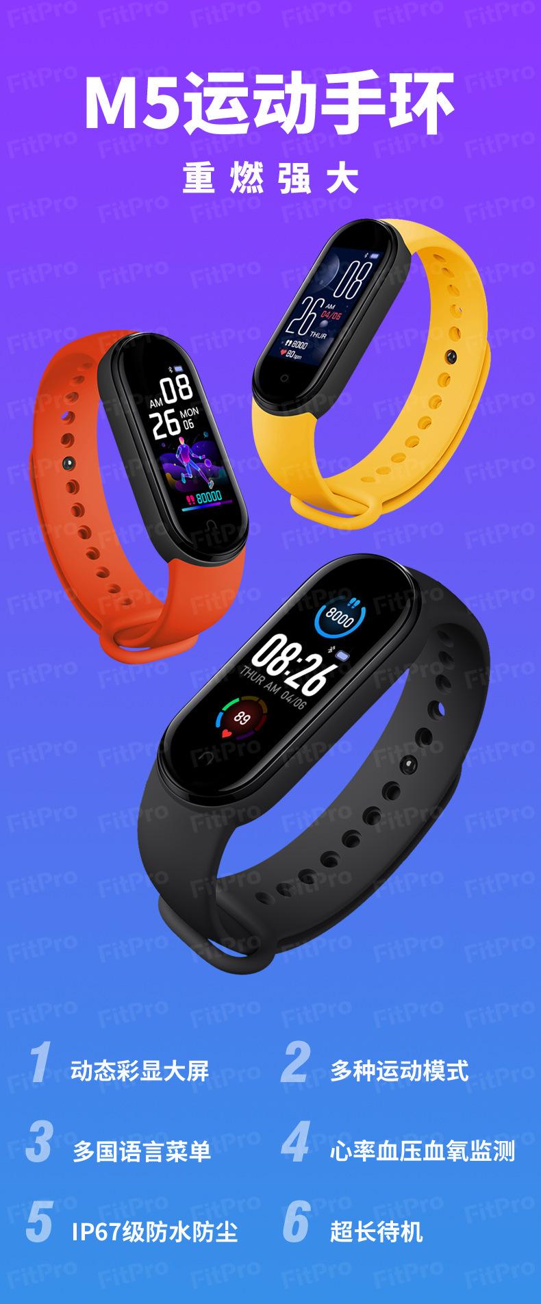 Nueva pulsera inteligente M5 monitoreo de salud frecuencia cardíaca presión arterial pulsera deportiva pulsera electrónica regalo suministro directo de fábrica
