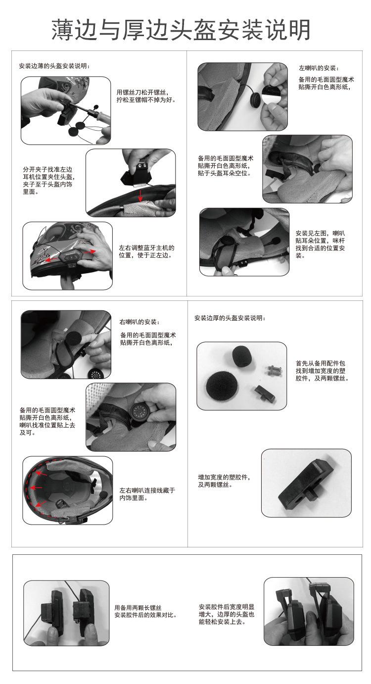 El auricular Bluetooth para casco está diseñado según la estructura interna del casco integral y el medio casco de los cascos de motocicleta. Utiliza tecnología Bluetooth 5.0+EDR y admite la función de respuesta automática. Ya no necesita contestar manualmente la llamada cuando hay una llamada entrante. Es seguro y rápido.Admite funciones como saltar canciones, subir y bajar el volumen, reproducir/pausar, retorno automático, etc. Es simple de operar y fácil de usar.