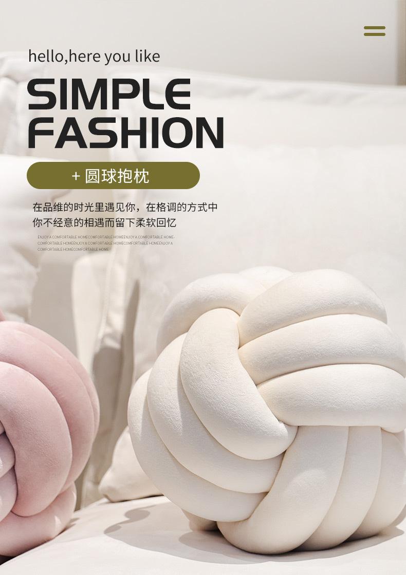 Cojín Escandinavo Transfronterizo de Tres Hebras Anudado Tejido a Mano Nudo Bola Redonda de Tela para Cabecera Cojín para Sofá Cojín Lumbar