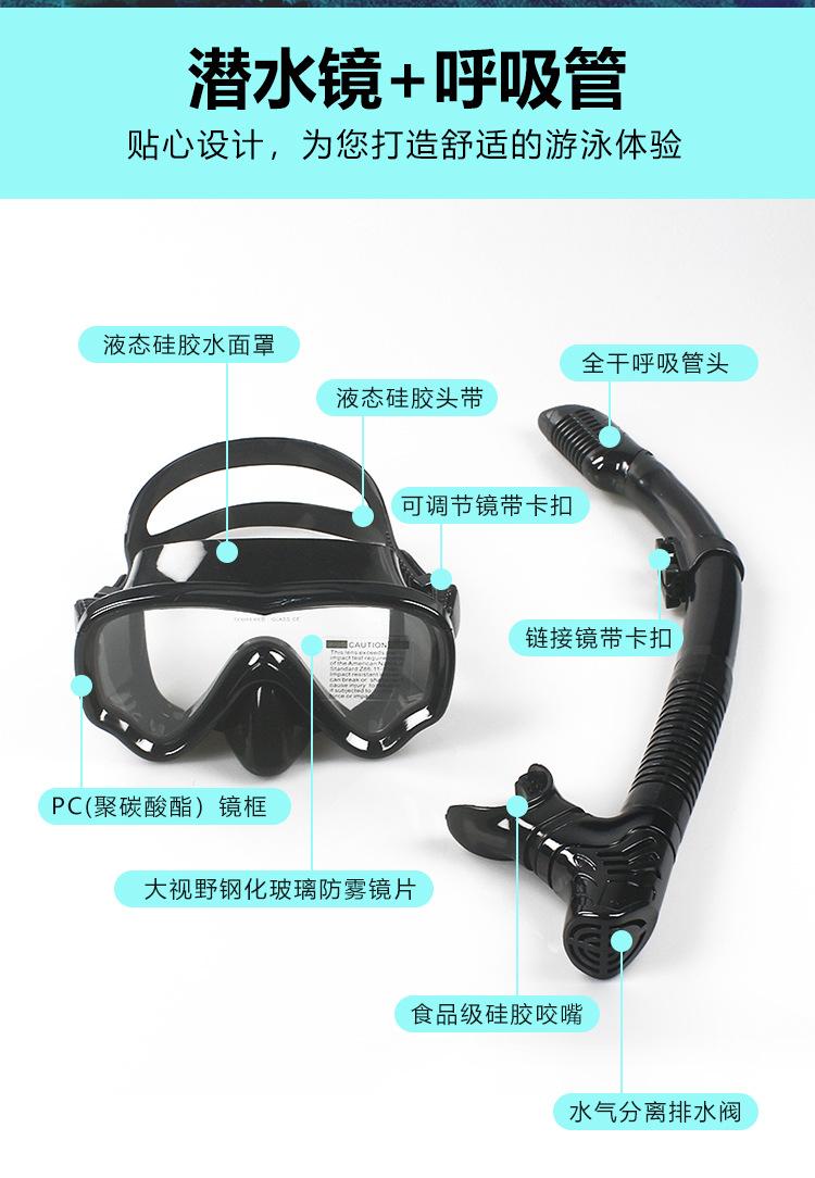 Gafas de Buceo Profesionales Buceo Libre Alta Definición Antivaho Máscara de Snorkel de Marco Grande Protección Nasal Set de Snorkel Integrado Totalmente Seco