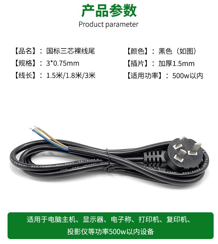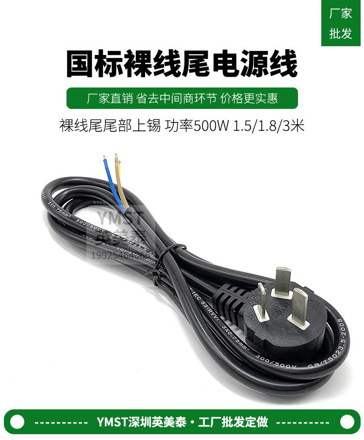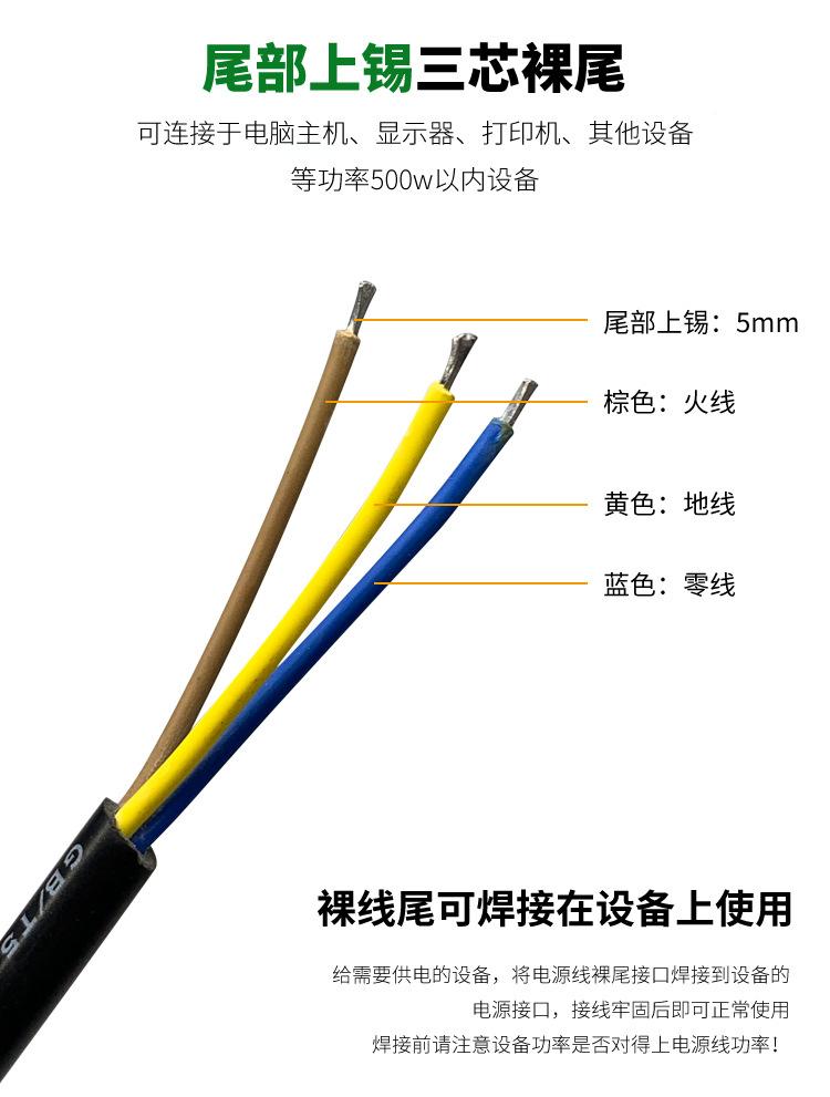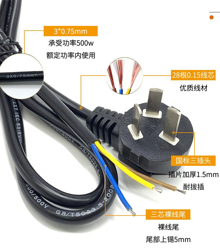 Enchufe de cable de alimentación GB de 3 clavijas de un solo cabezal 3 núcleos 0.75 cuadrado cable de tira de tres clavijas con tres orificios y tres clavijas cable desnudo
