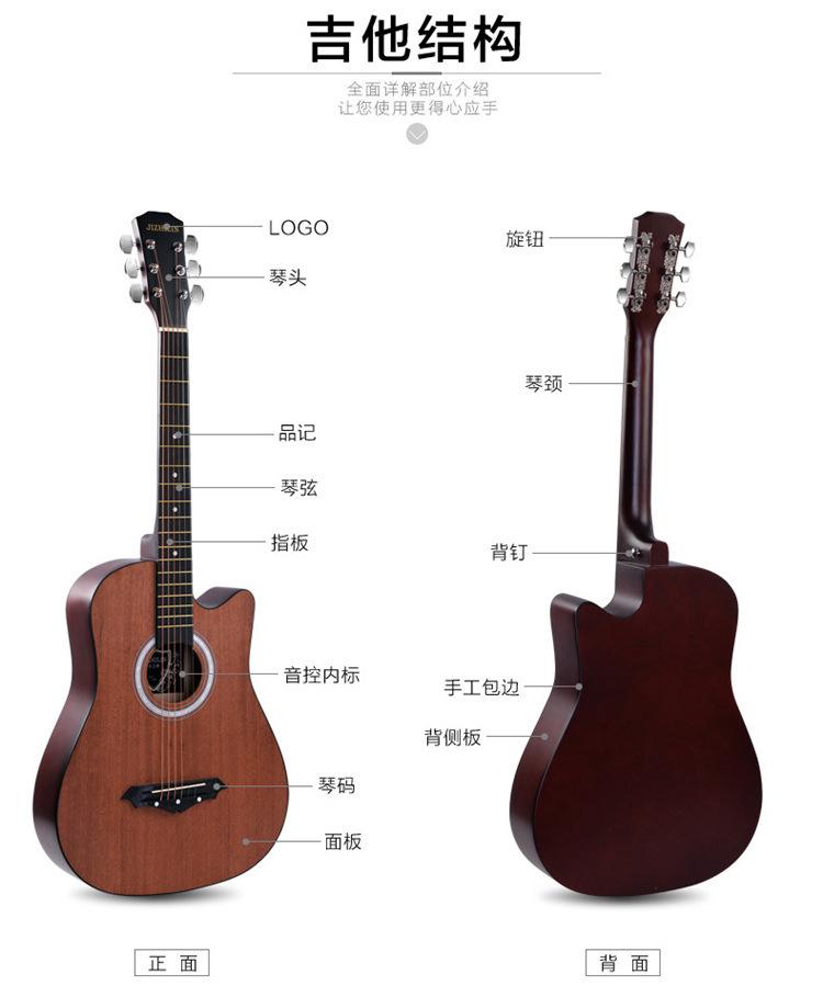 Madera de Sapele 38 pulgadas Guitarra Acústica Folk para Principiantes, Recomendada para Principiantes, Instrumentos de Guitarra al por Mayor