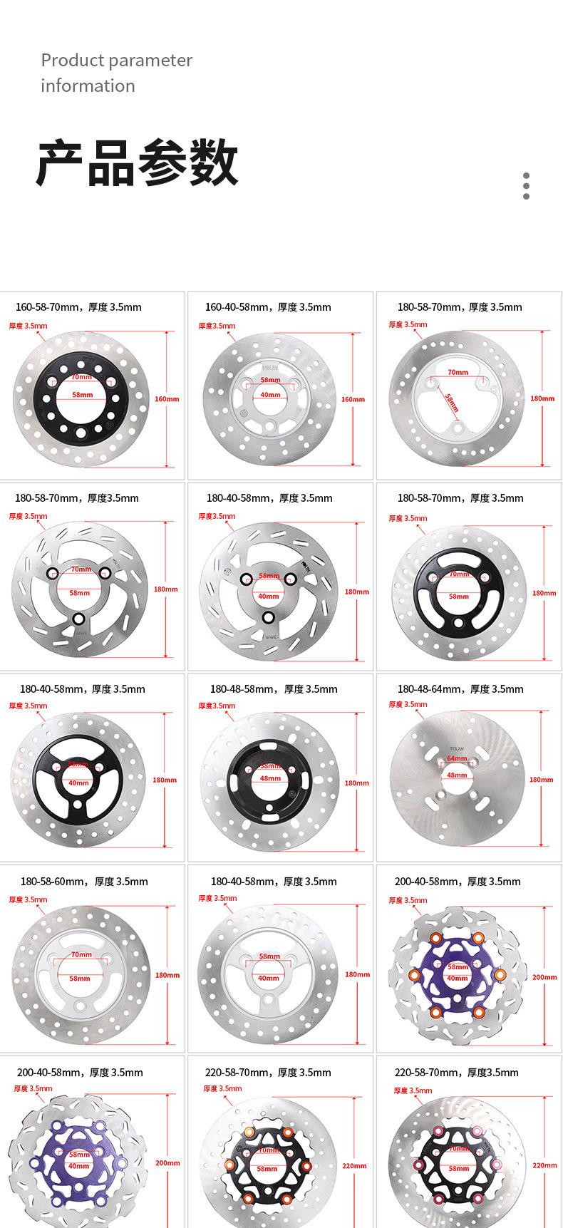 Disco de freno para coche eléctrico al por mayor, 160, 170, 180, 200 y 220, universal, resistente al desgaste, para modificación de motocicleta eléctrica.