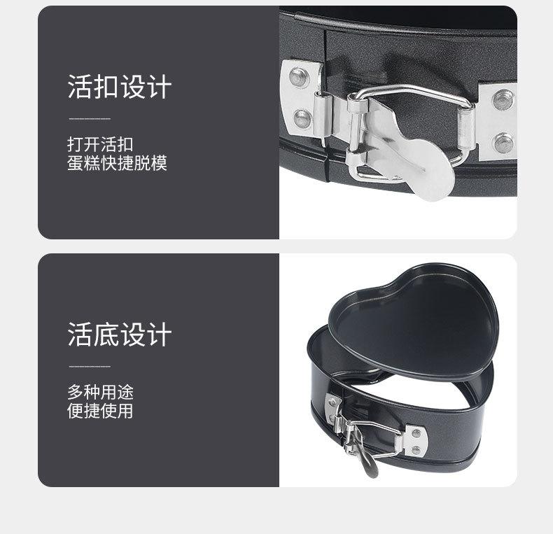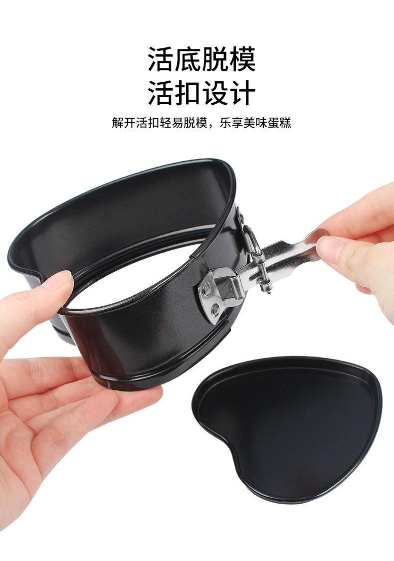 Herramientas para hornear transfronterizas, molde para pastel de amor con cierre de fondo vivo de 4 pulgadas, molde para pastel de acero al carbono, molde para hornear pasteles en forma de corazón
