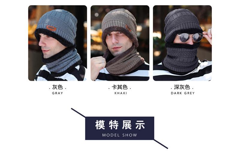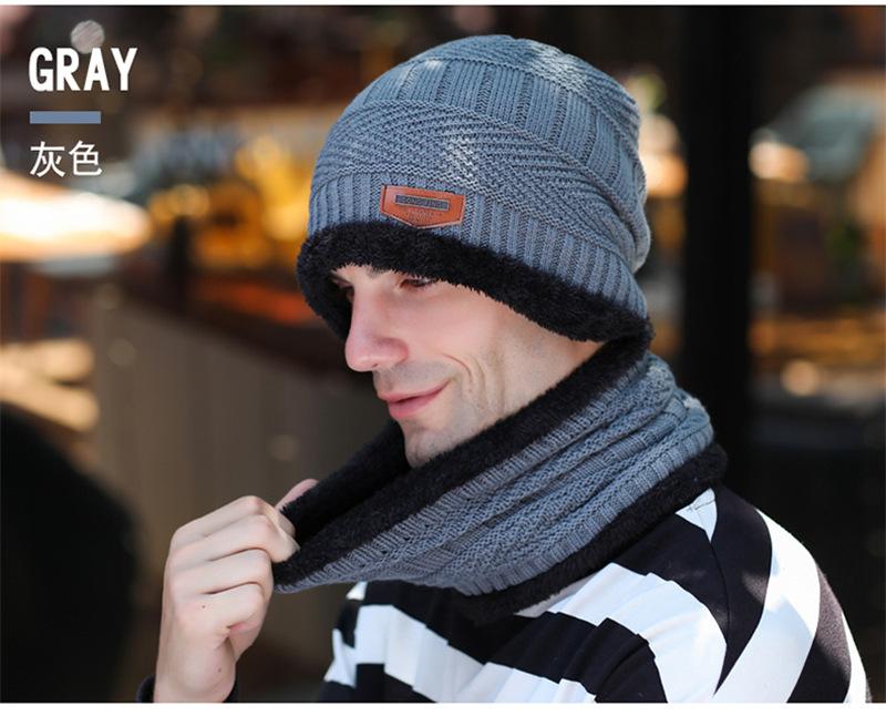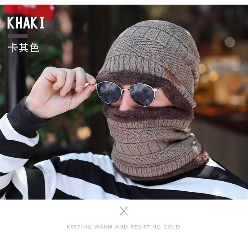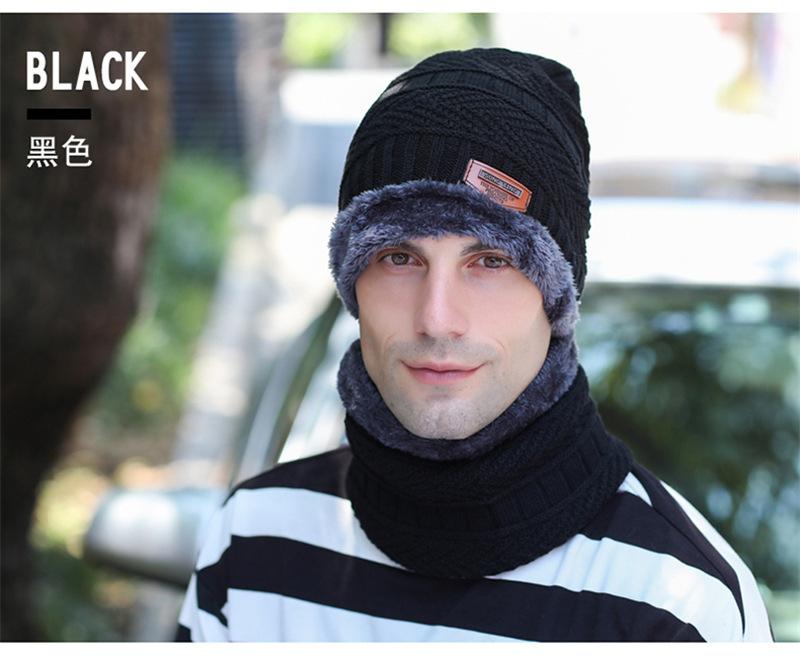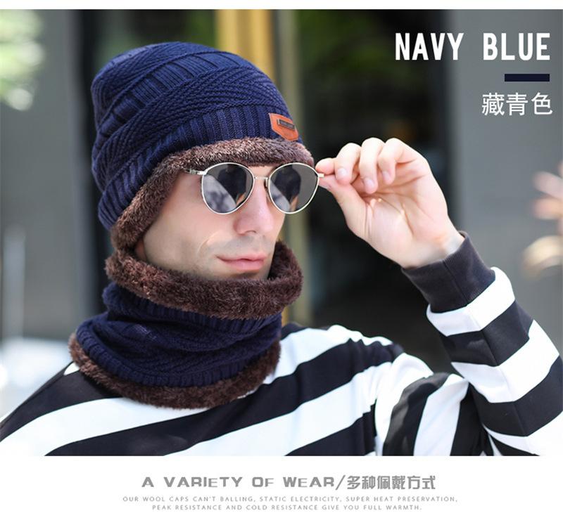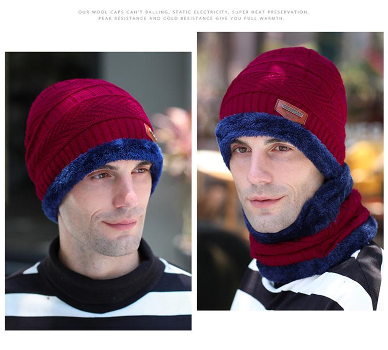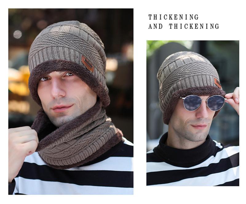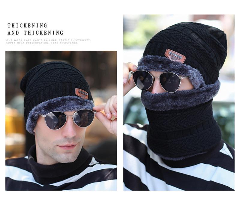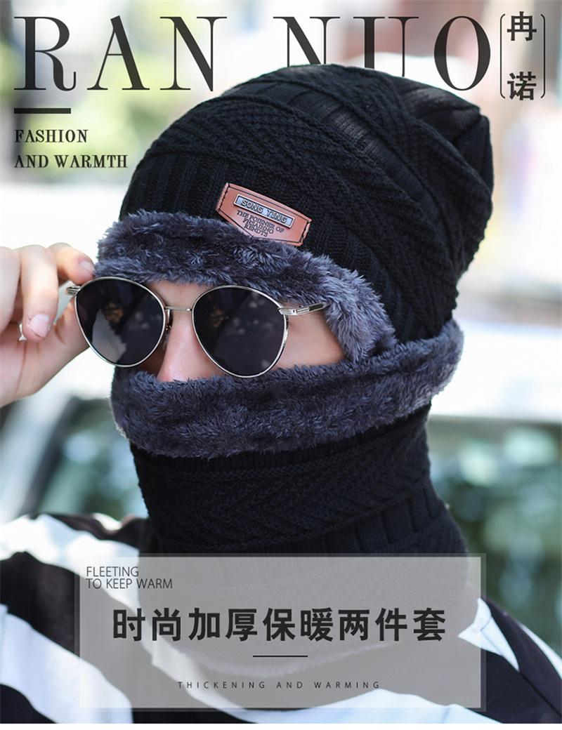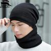 Gorro de punto de lana para hombre, de venta transfronteriza, de otoño e invierno, con bufanda y gorro acolchado de terciopelo, gorro de punto de dos piezas