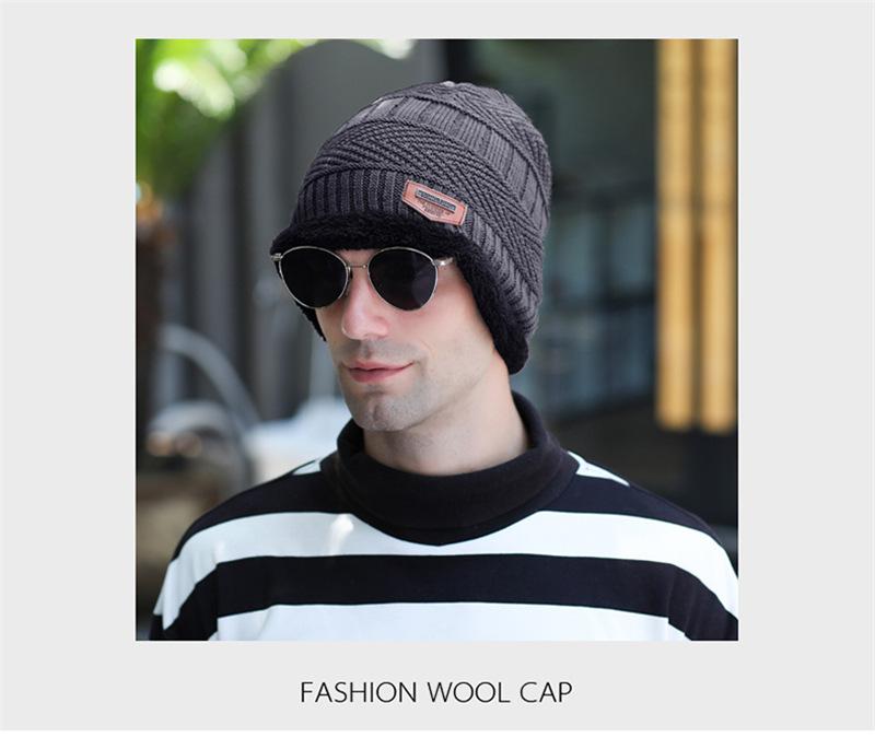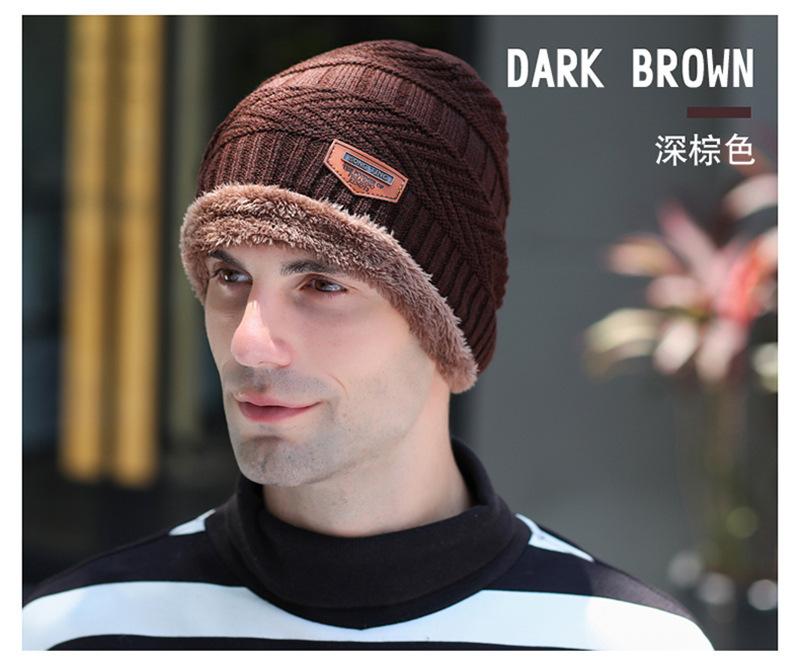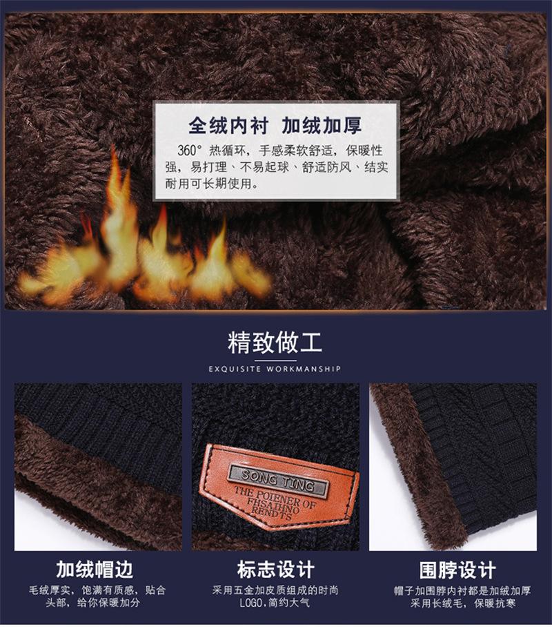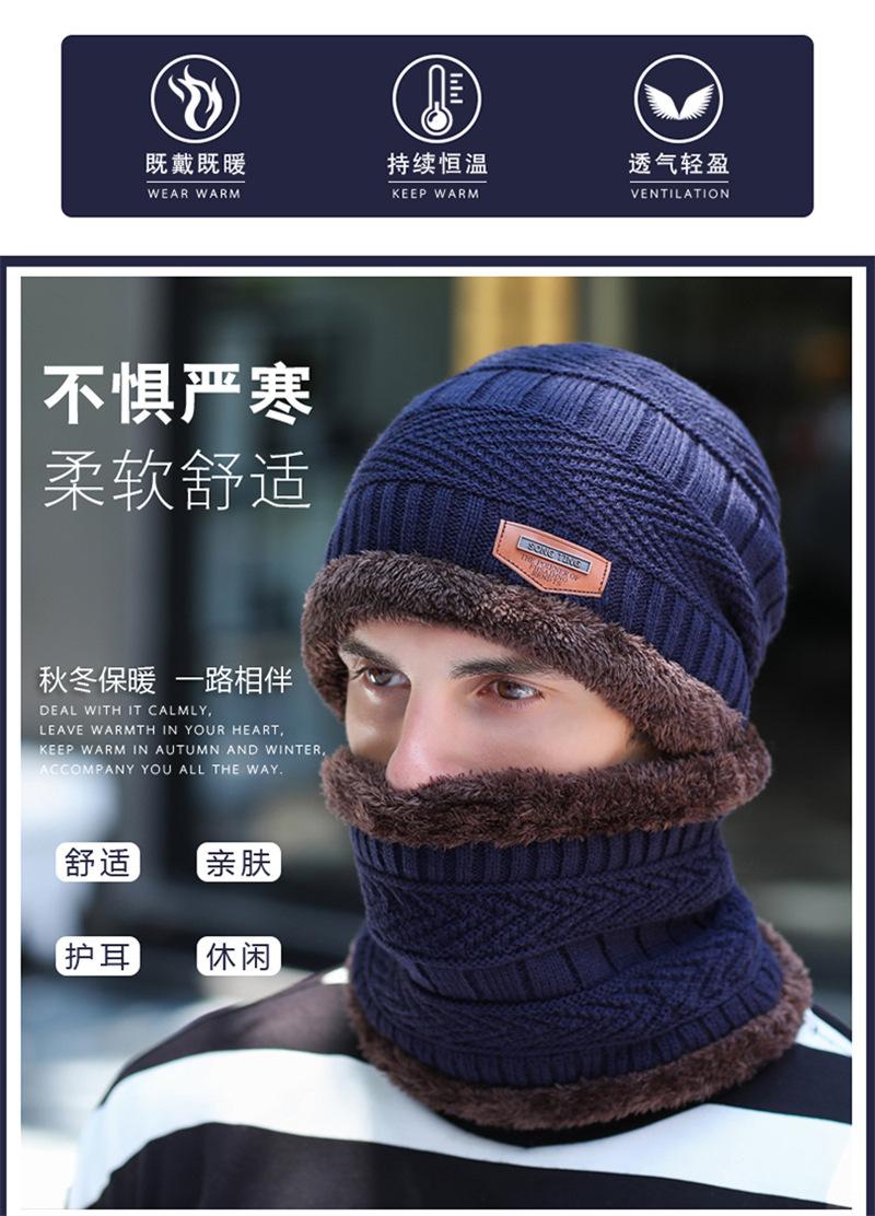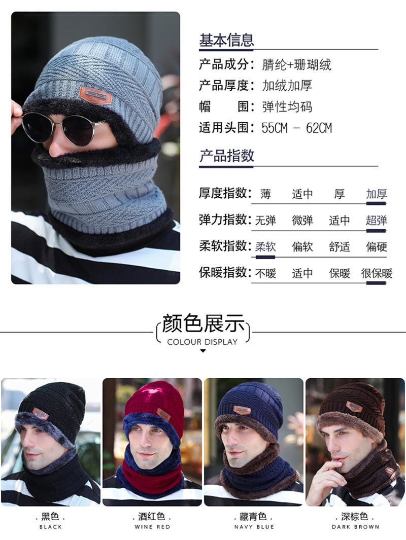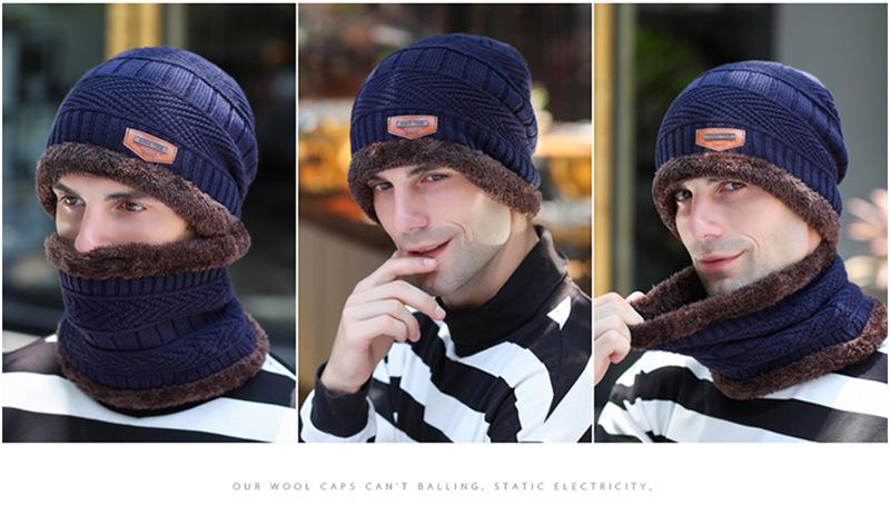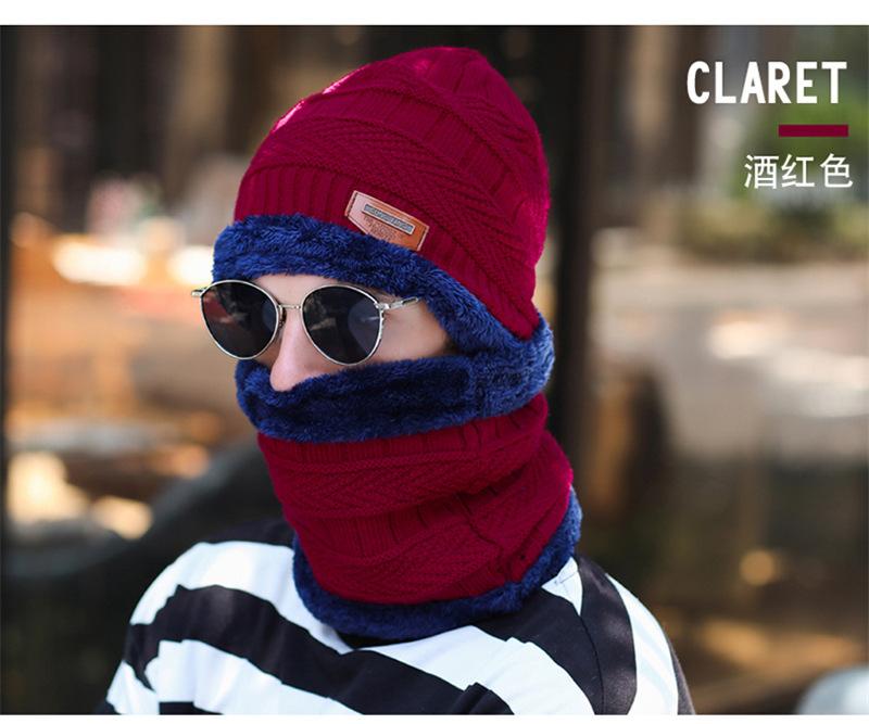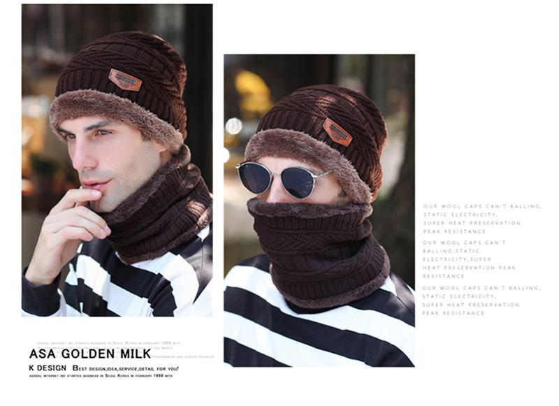 Gorro de punto de lana para hombre, de venta transfronteriza, de otoño e invierno, con bufanda y gorro acolchado de terciopelo, gorro de punto de dos piezas