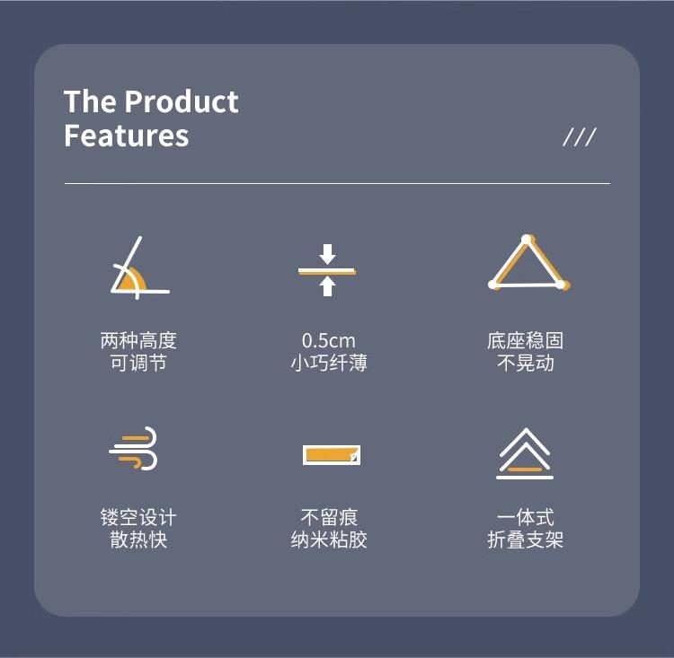 Gray [metal] invisible folding portable★Efficient heat dissipation★Height adjustable