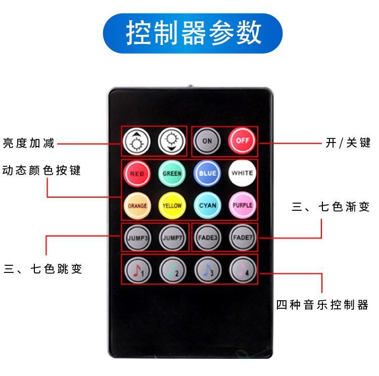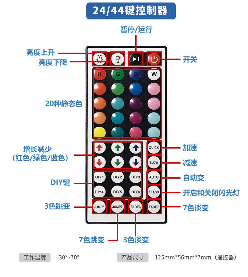 3-key Wire Control + 5050RGB light strip (30 lights/meter), 24 key remote control + 5050RGB light strip (30 li...