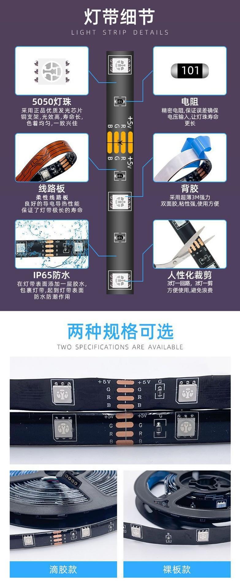 Compra Tira de luz LED 5050RGB, tira de luz de bajo voltaje de 5 V, tira de luz LED autoadhesiva USB, resistente al agua, tira de luz de ambiente de fondo de TV al por mayor en Joom.pro