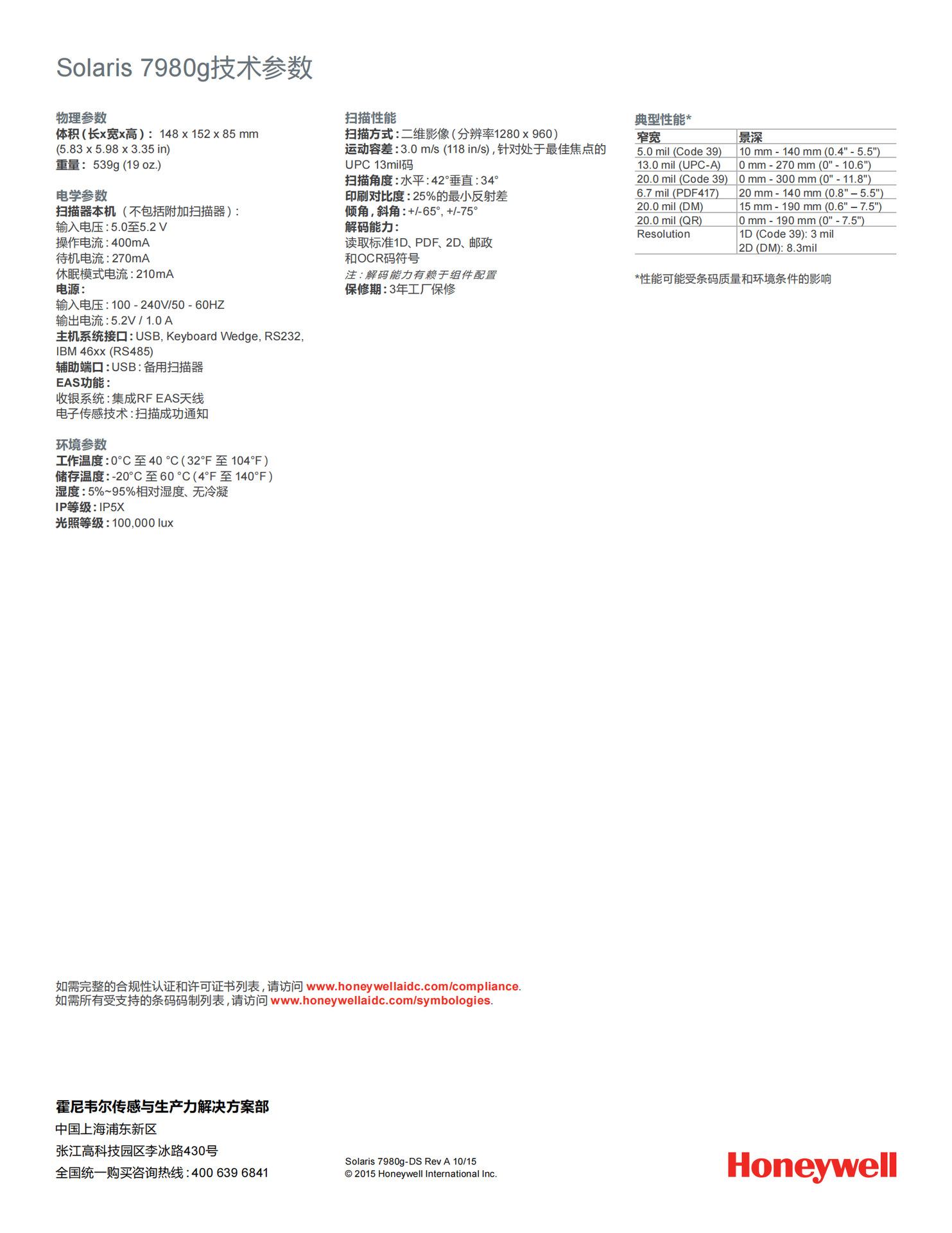 Escáner de código de barras Honeywell MS7980G para supermercados, tiendas, cajas registradoras, seguros médicos, certificados electrónicos, códigos de escaneo.