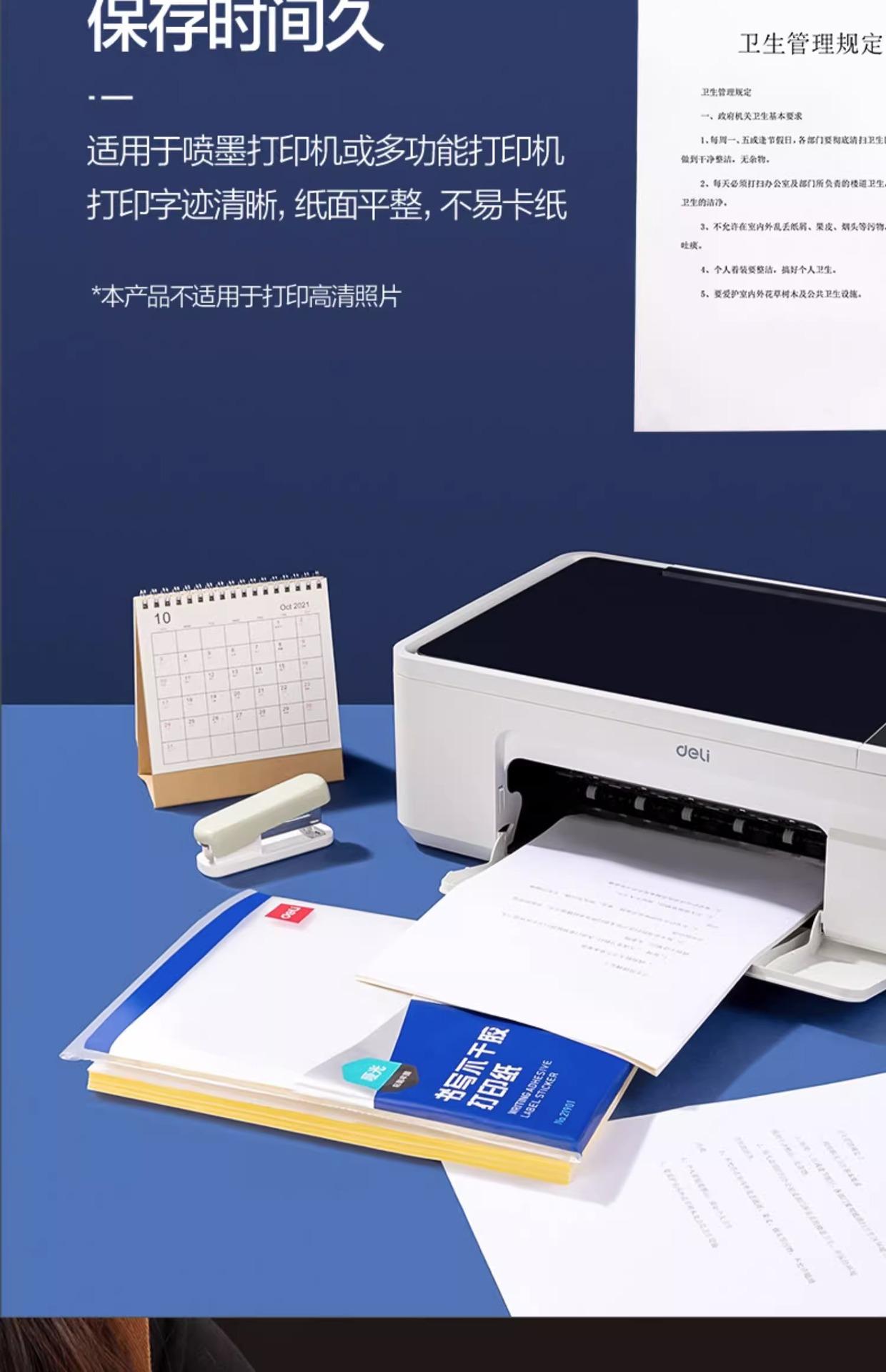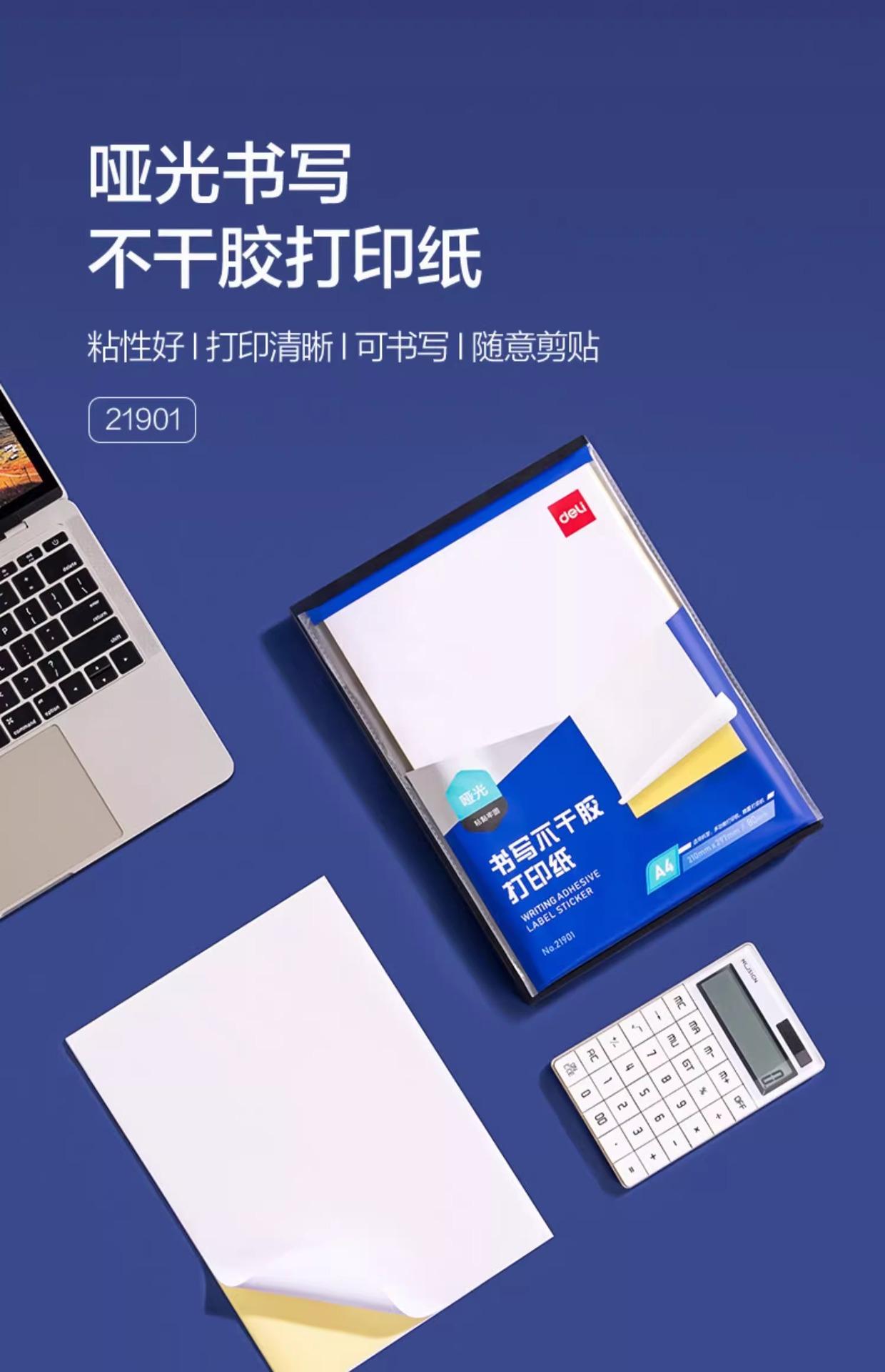 Papel de impresión autoadhesivo Deli A4, superficie mate, adhesivo en blanco, etiqueta adhesiva de impresión autoadhesiva, etiqueta adhesiva mate 21901