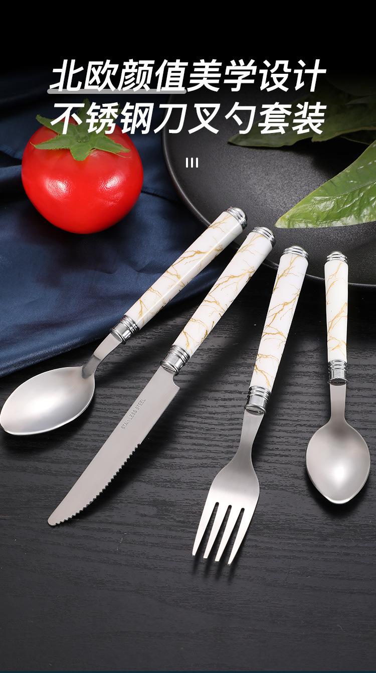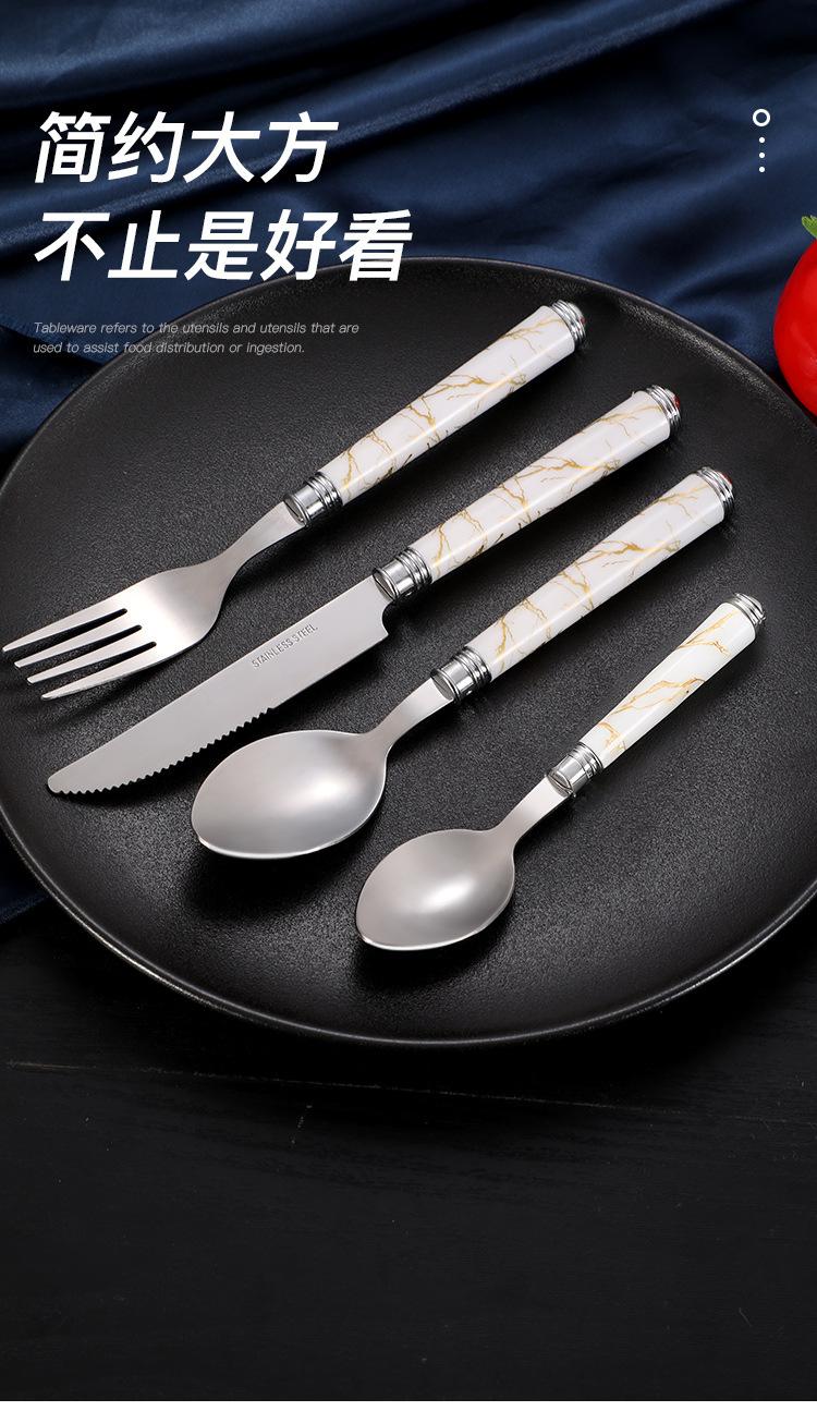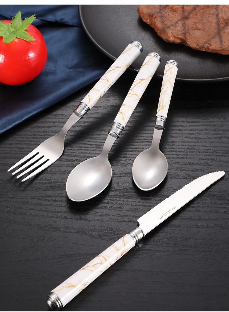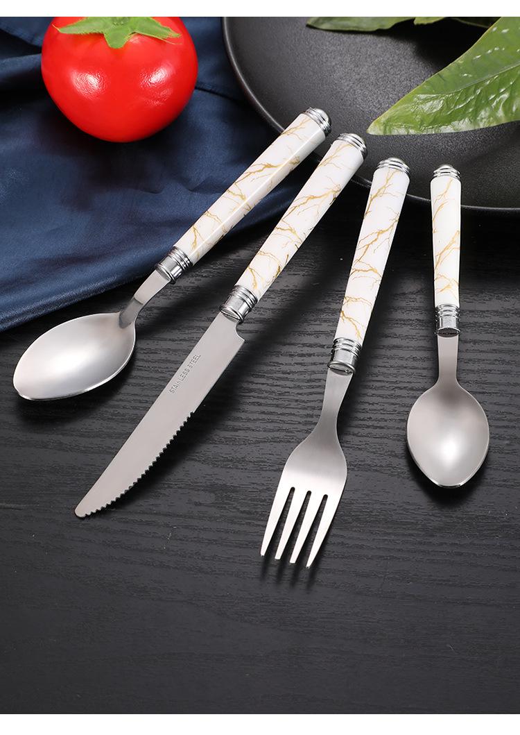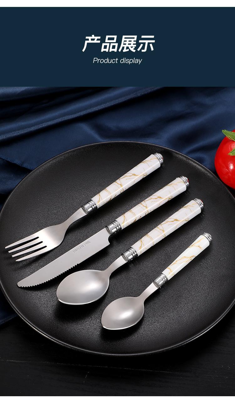 Cuchillo, Tenedor y Cuchara de Acero Inoxidable, Mango de Cerámica, Cuchara de Café, Tenedor de Postre, Tenedor y Cuchara Occidentales para Bistec, Juego de Vajilla de Cuatro Piezas