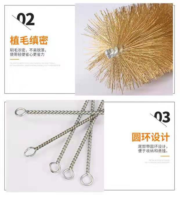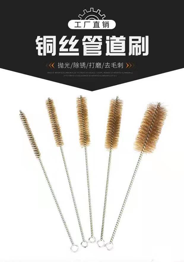 Cepillo de alambre de cobre para tuberías, eliminación de óxido y descontaminación, cepillo de alambre de cobre, cepillo de limpieza de tuberías, cepillo de alambre de mango largo redondo, cepillo de alambre de acero para tuberías