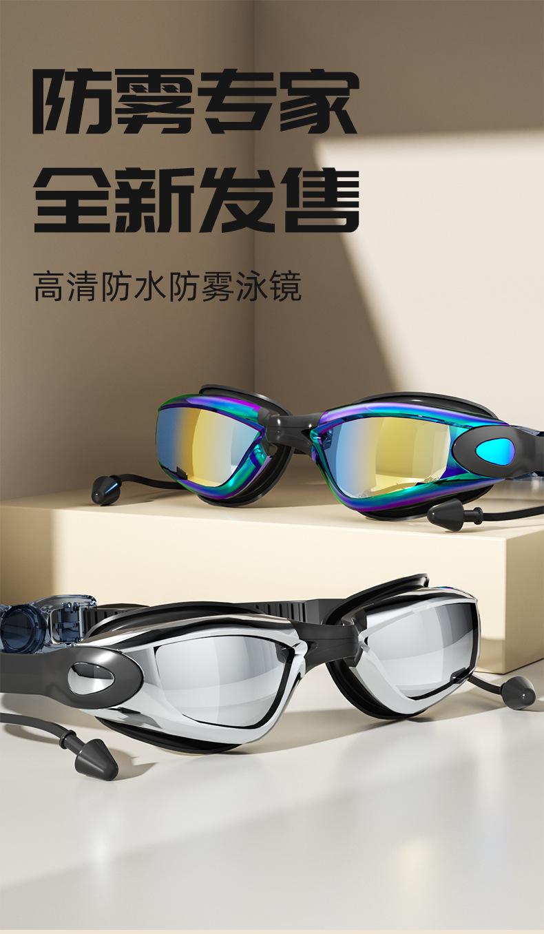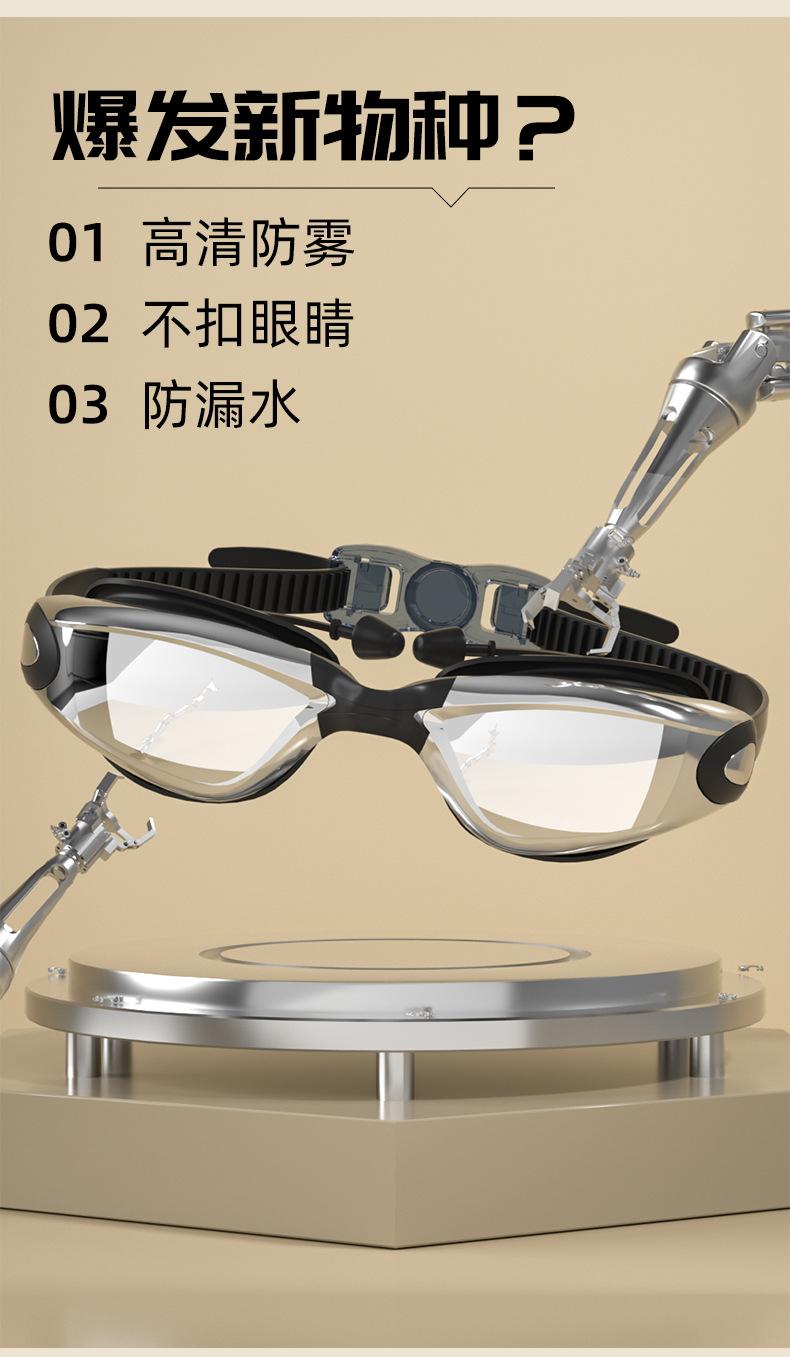 Gafas de natación para adultos, impermeables, antivaho, HD, montura grande, galvanizadas, venta al por mayor, gafas para miopía, hombres y mujeres, transfronterizos